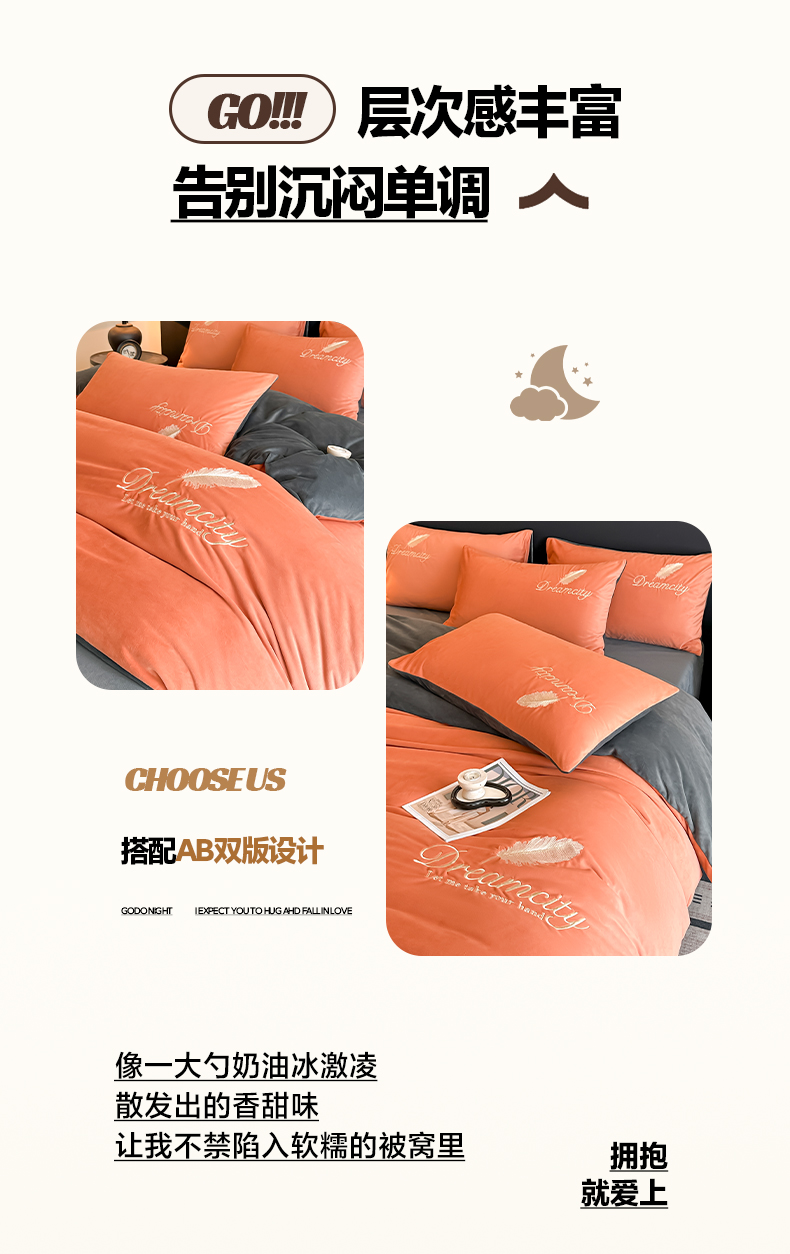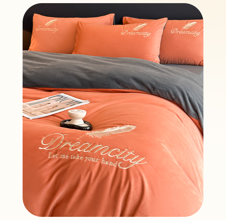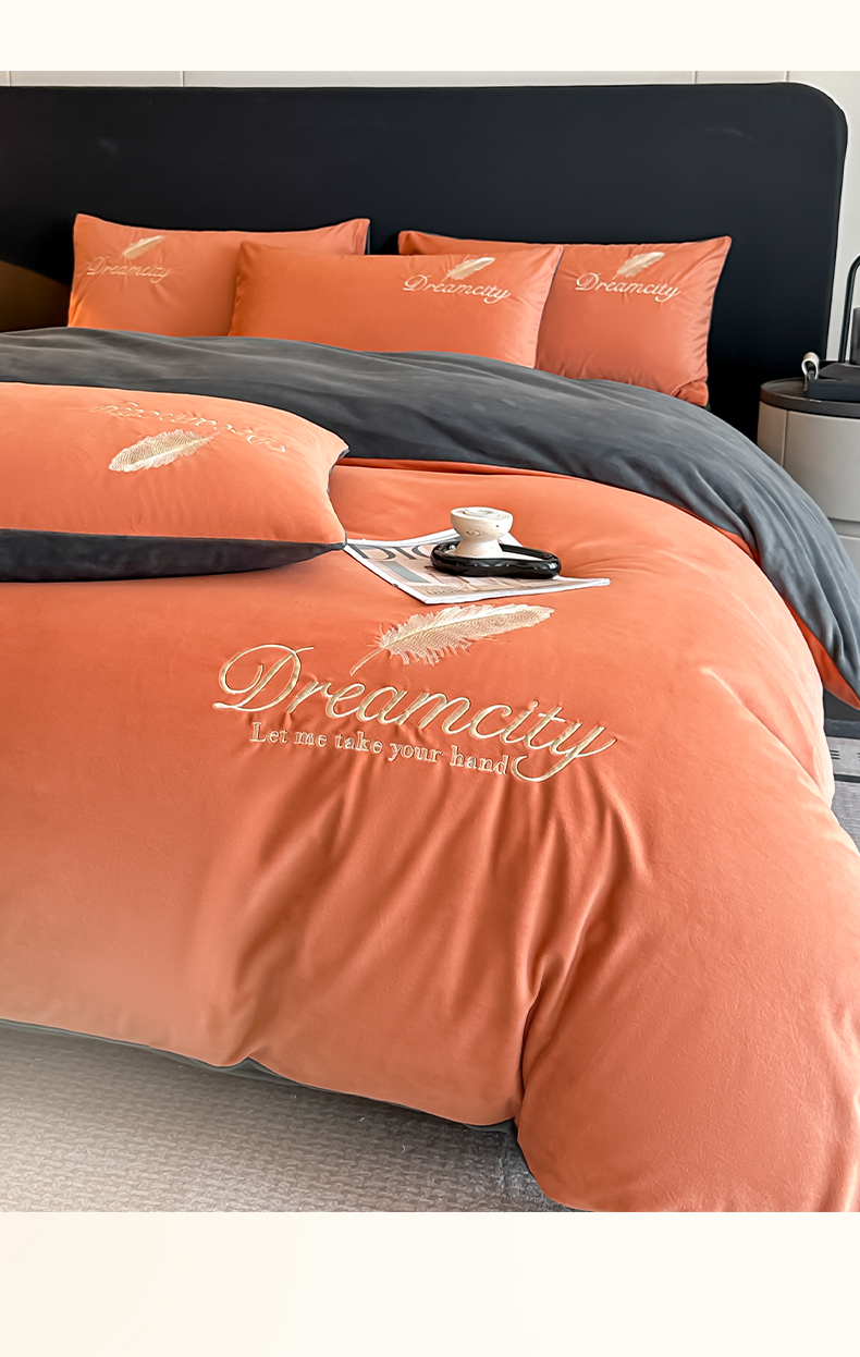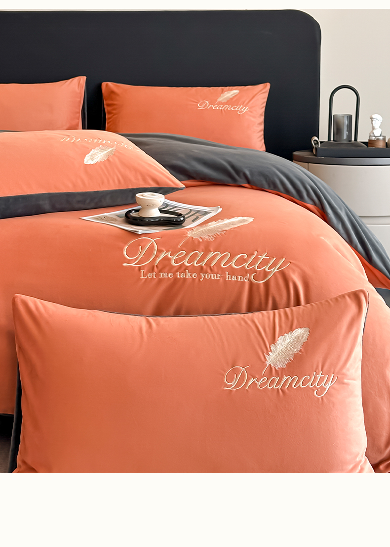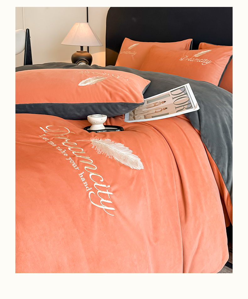 当前位置: 91家纺网 > 商品网购 > 床品套件 > 四件套 > 其它四件套 > 如一 2025新款水晶绒双拼刺绣四件套轻羽系列 轻羽-落日橙