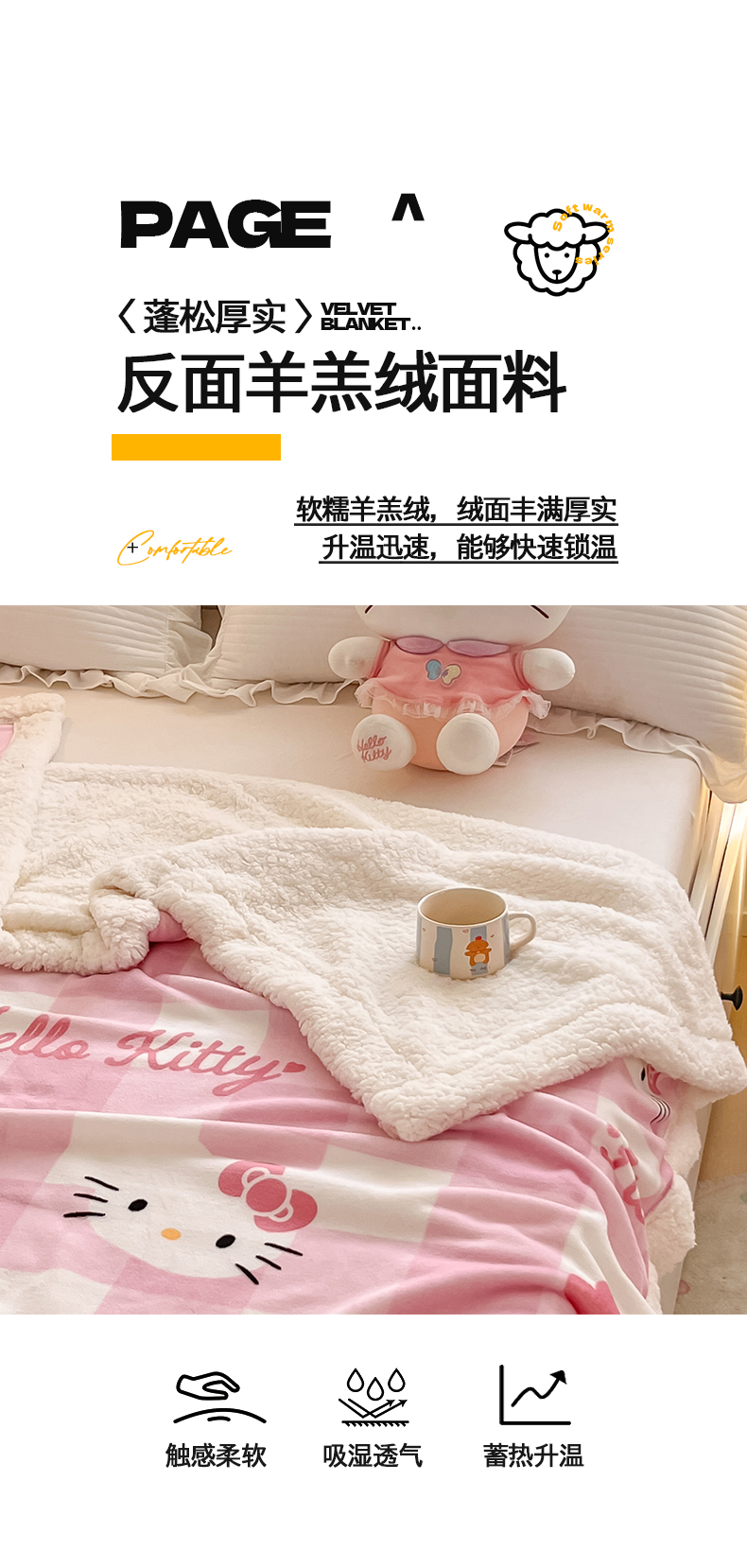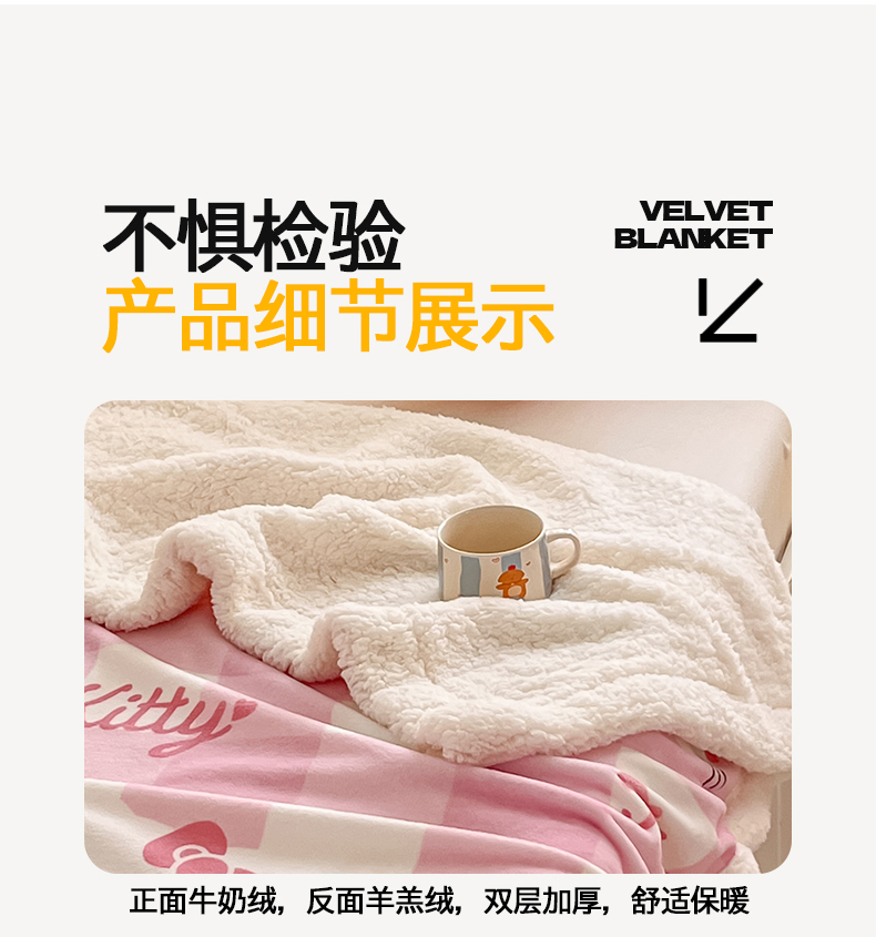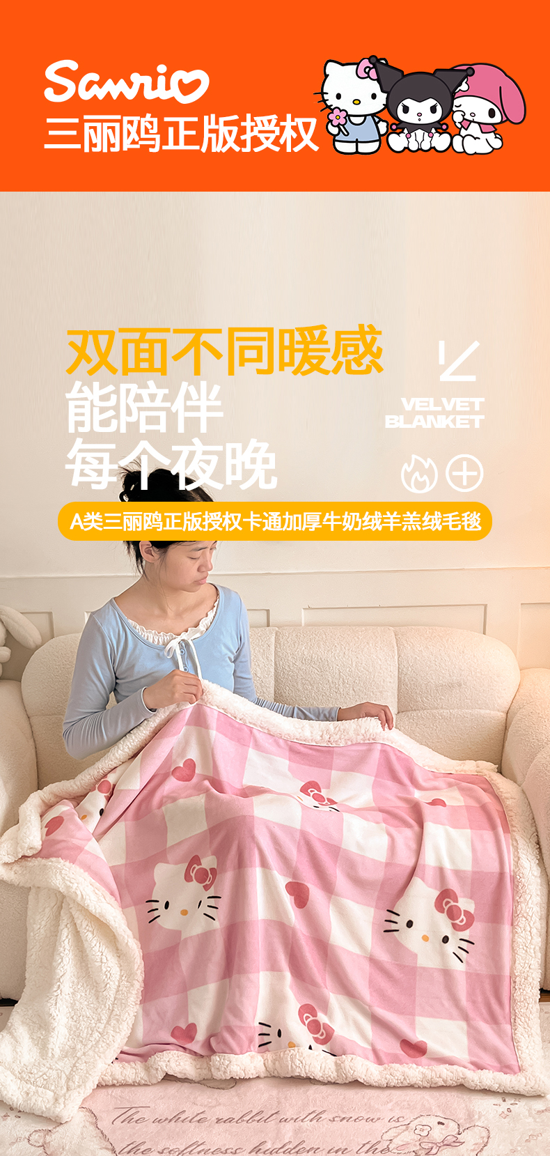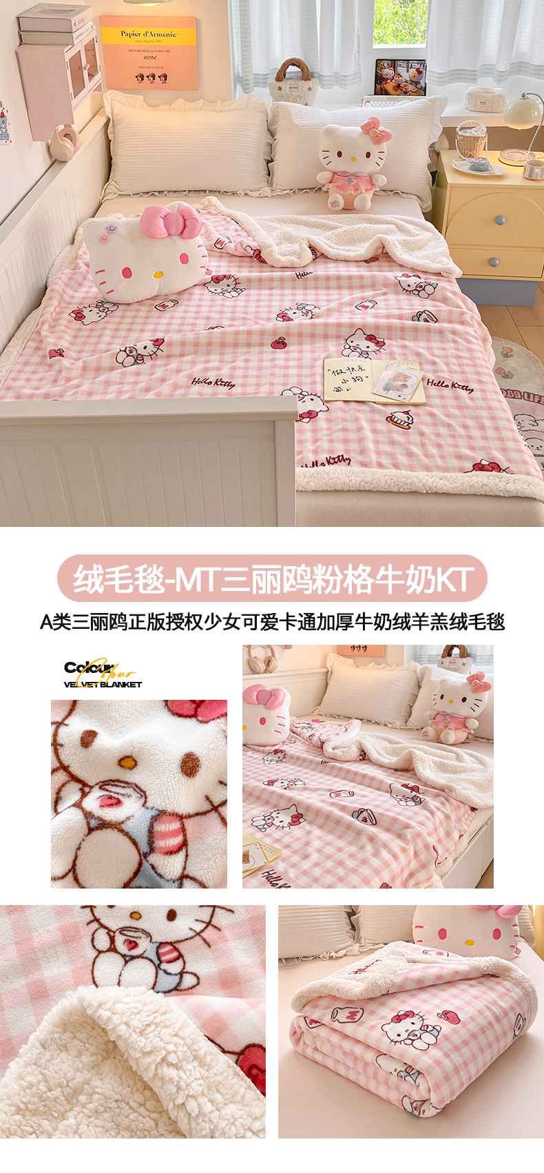 当前位置: 91家纺网 > 商品网购 > 床品套件 > 四件套 > 葡萄家 2025新款A类三丽鸥正版授权少女可爱卡通加厚牛奶绒羊羔绒多功能四季毛毯毯子 绒毛毯-MT三丽鸥粉格爱心KT