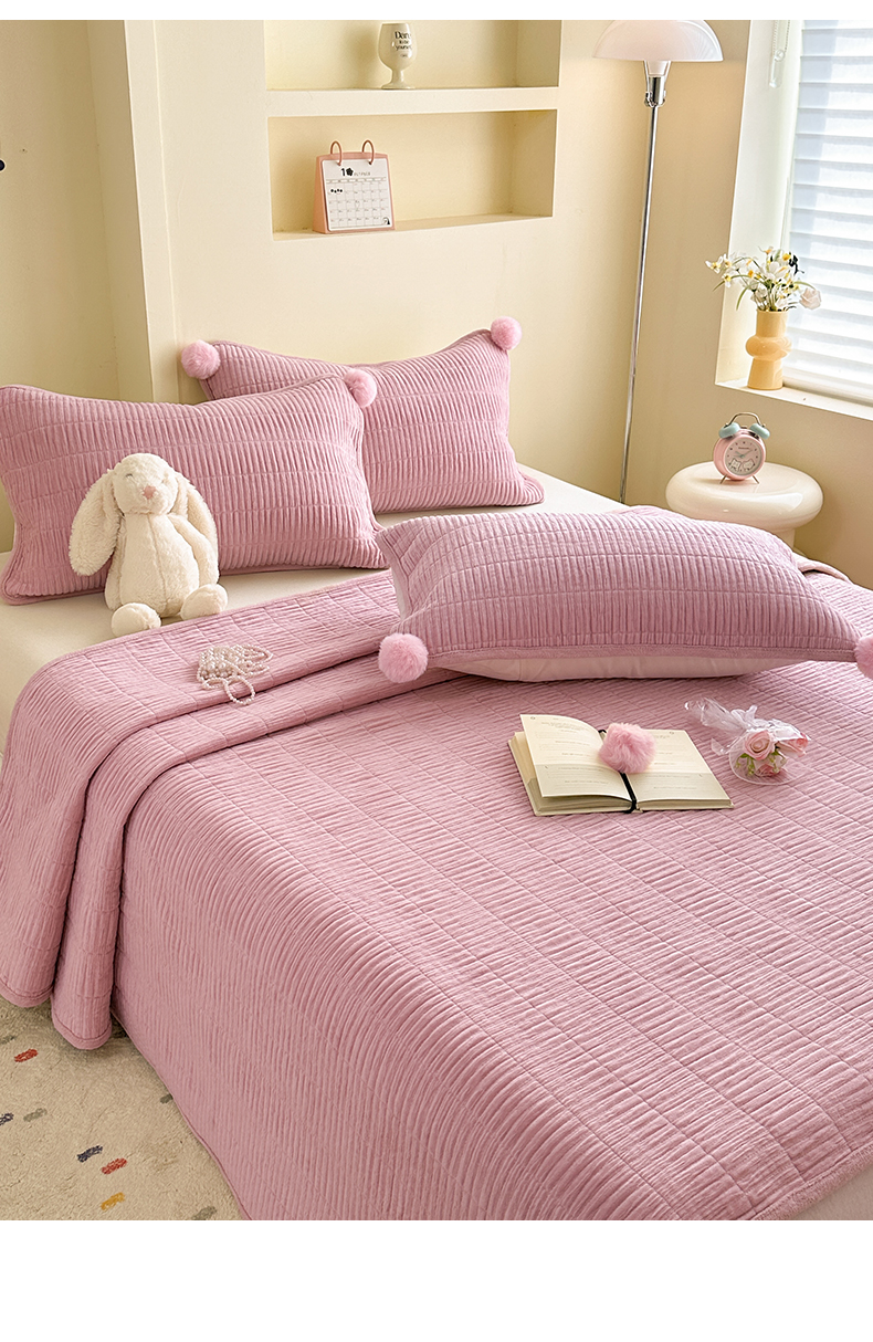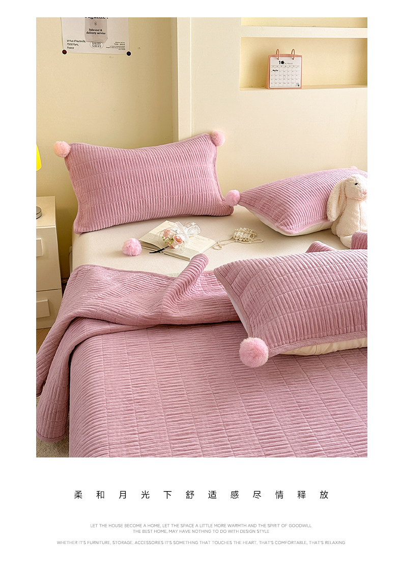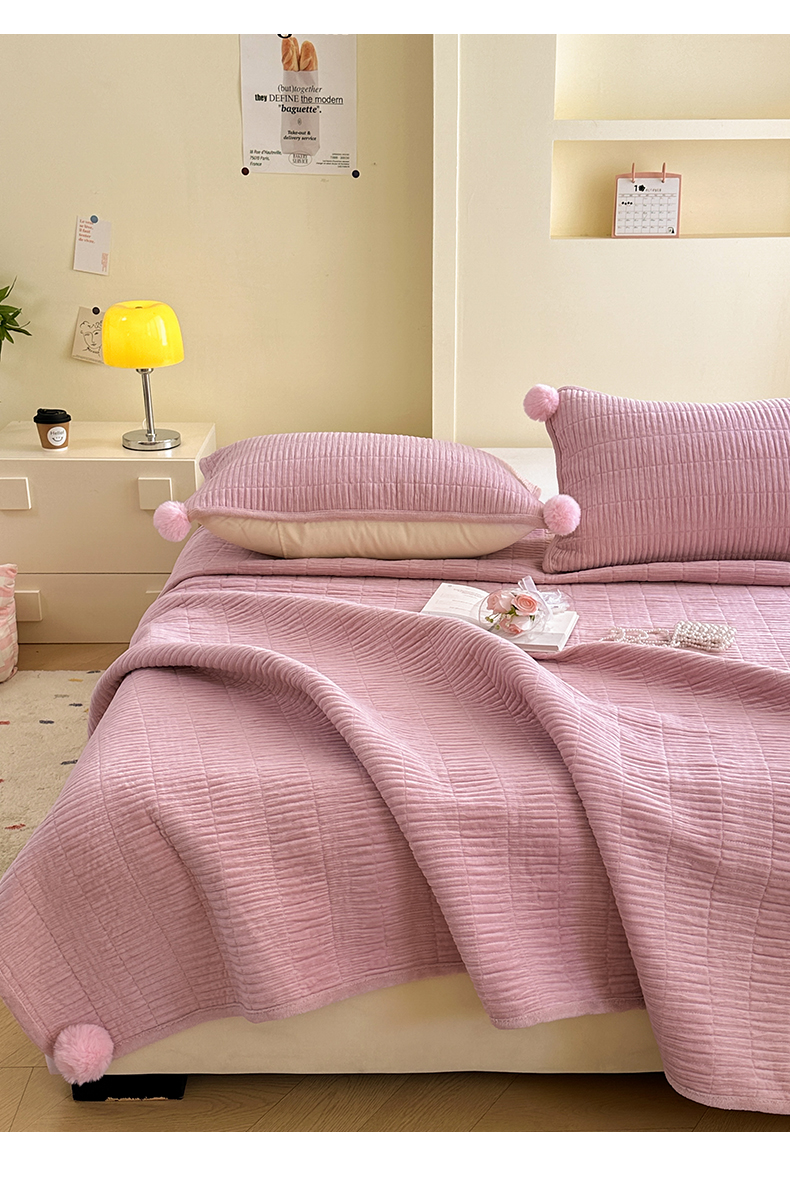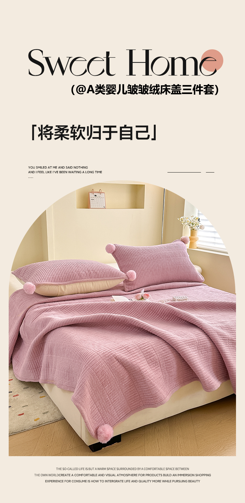 寐居家纺 2025新款婴儿皱皱绒纯色床盖三件套 青岚-豆沙粉