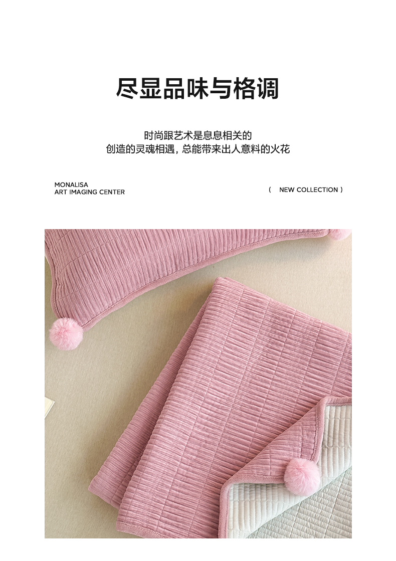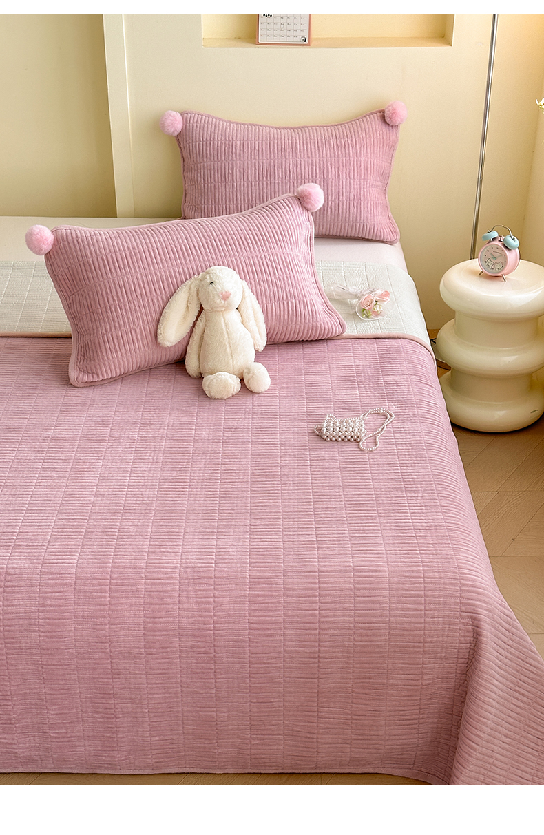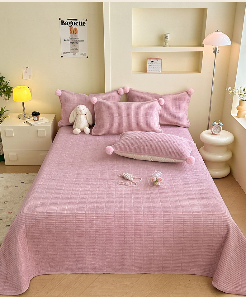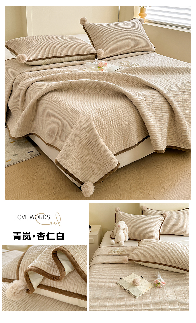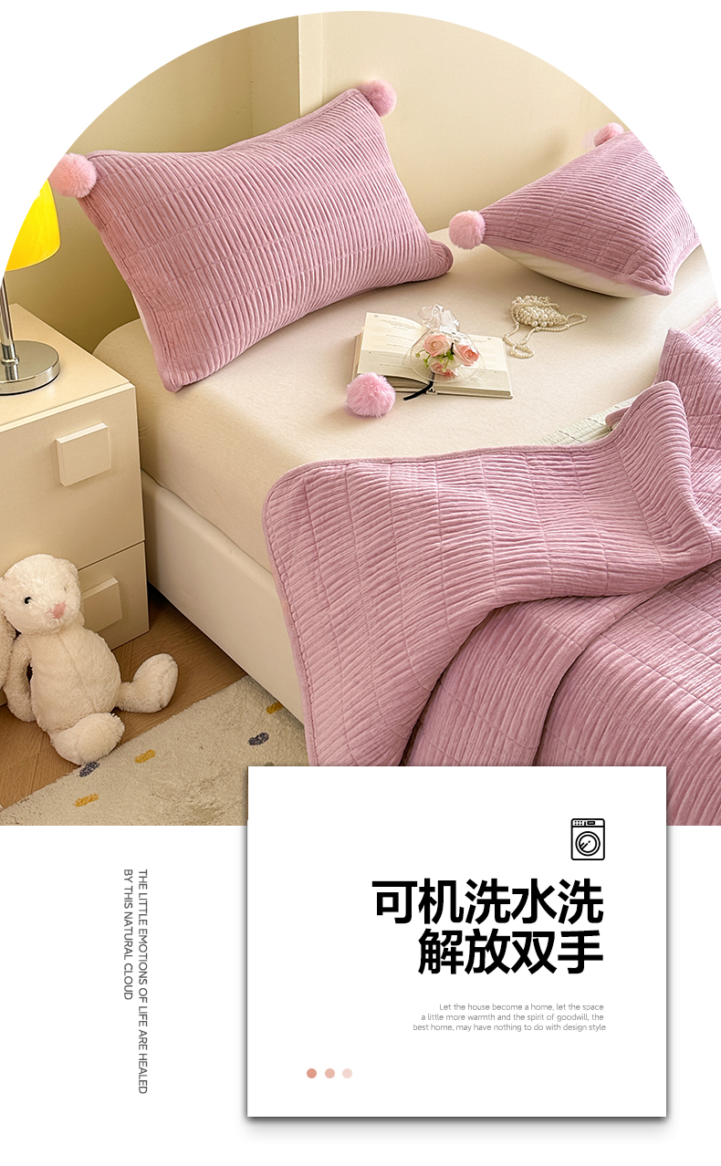 寐居家纺 2025新款婴儿皱皱绒纯色床盖三件套 青岚-豆沙粉