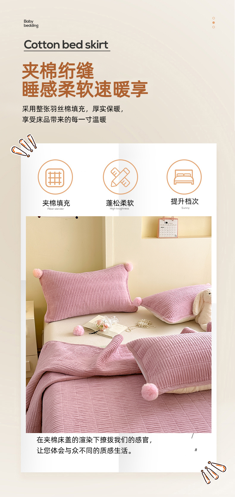 商品名称:寐居家纺 2025新款婴儿皱皱绒纯色床盖三件套 青岚-豆沙粉