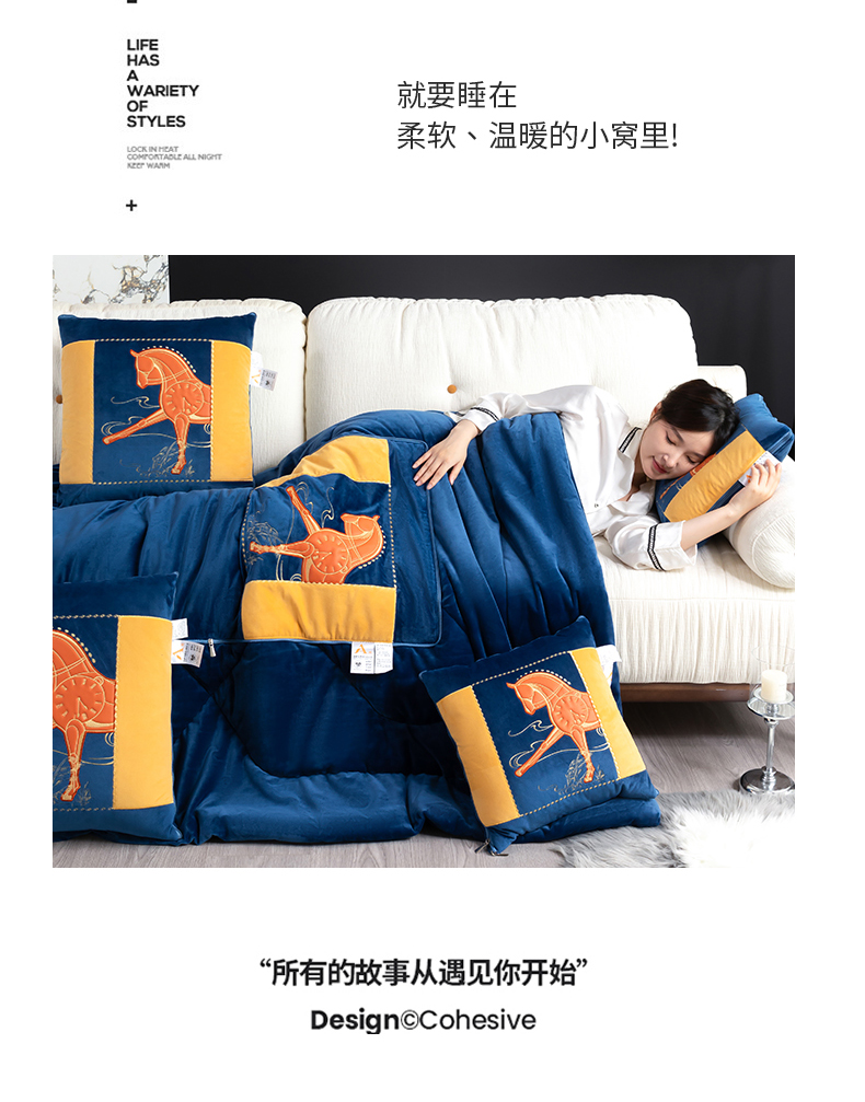 (总)吉利家居 2025新款婴儿绒多功能抱枕被-彩云马,宝石蓝,高级灰,酒红,孔雀蓝,雾霾灰