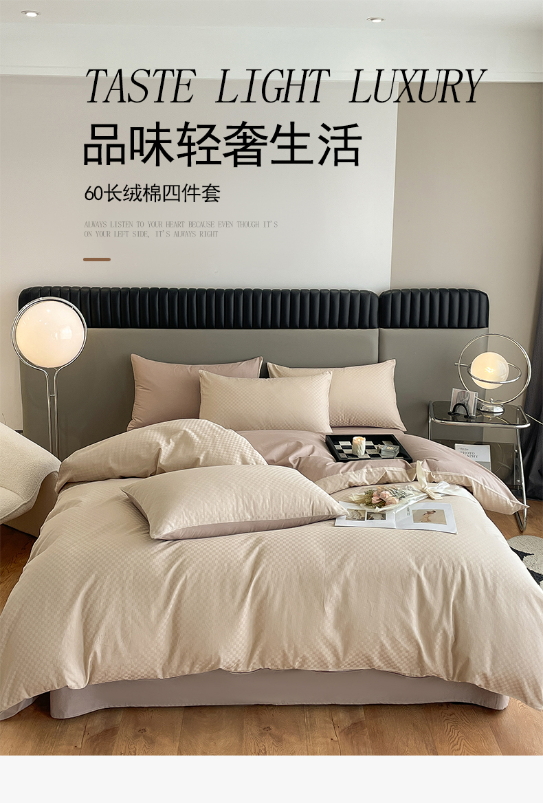 当前位置: 91家纺网 > 商品网购 > 床品套件 > 四件套 > 全棉普通四件套 > 琪格格纺织 2025新款60S长绒棉纯棉小方格四件套单被套 60长绒棉-杏仁+摩卡棕