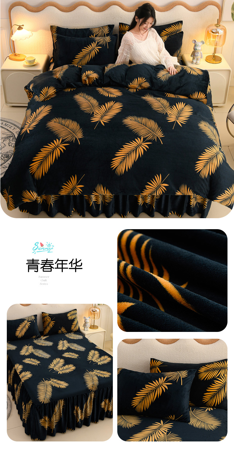 圣靓 2025新款高克重牛奶绒四件套印花床裙款 青春年华
