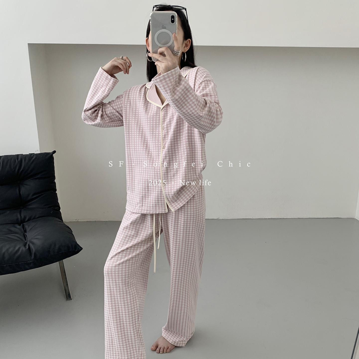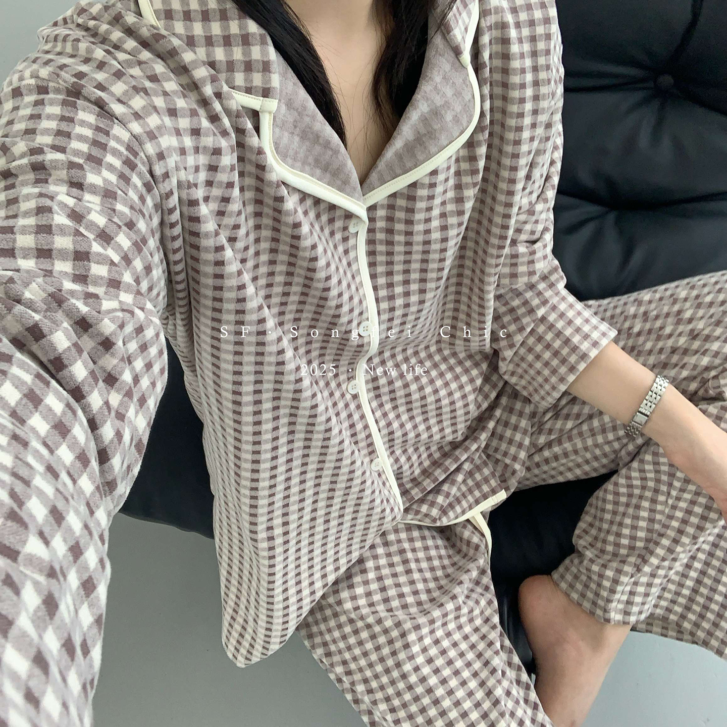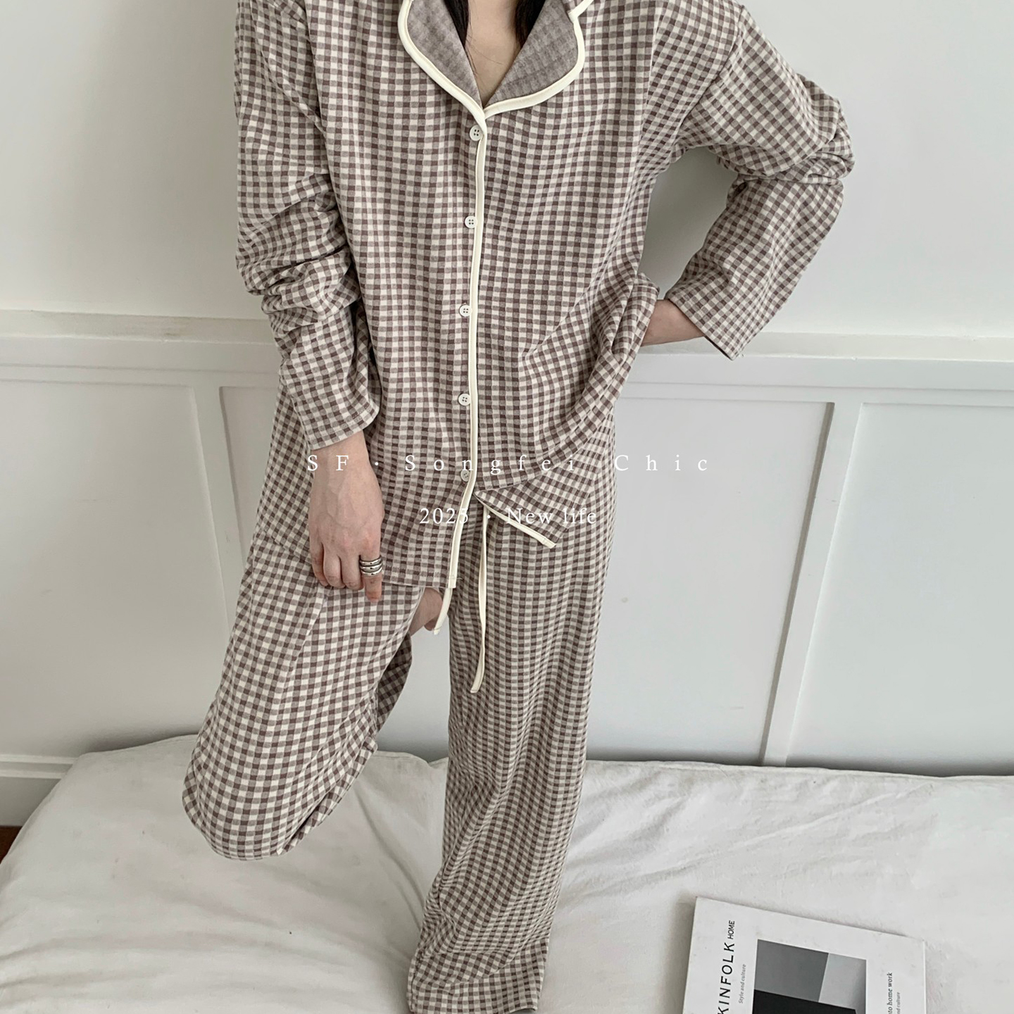 (总)妍景家居生活馆 2025新款韩系圆领纽扣蕾丝套装,巧克力咖,海涛兰,奶杏色