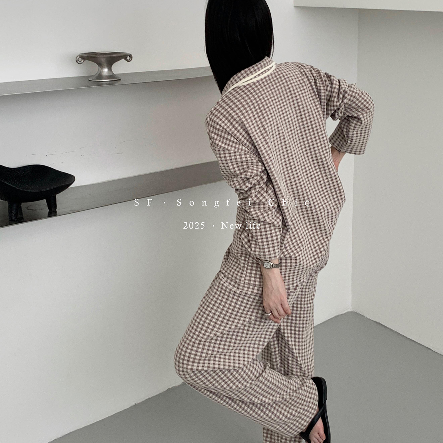 (总)妍景家居生活馆 2025新款D-3732 复古翻领简约格子款