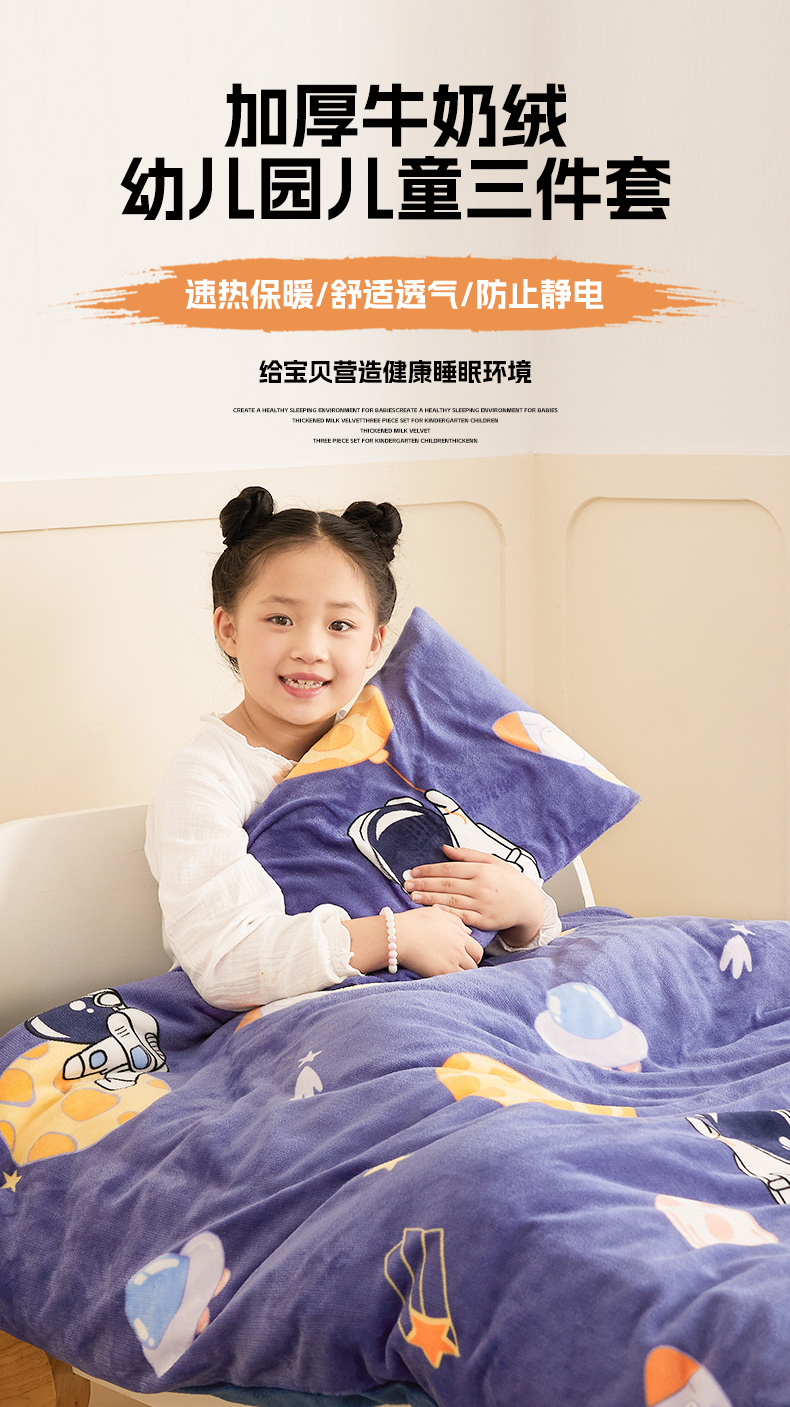 当前位置: 91家纺网 > 商品网购 > 婴童用品 > 婴童三件套 > 嗨生活 2025新款牛奶绒多功能儿童盖毯式可脱卸被套大豆被芯幼儿园被子 儿童被子 太空飞船