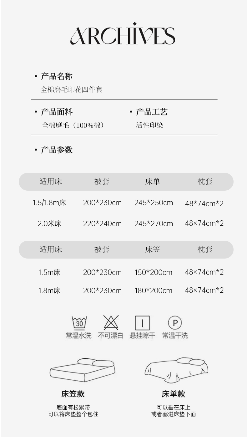 (总)时年家纺 2025新款60S长绒棉四件套,裸棉生活-绑带款,裸棉生活-纽扣款