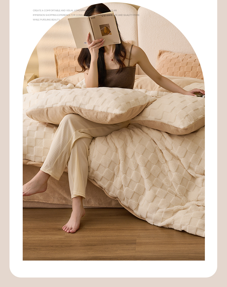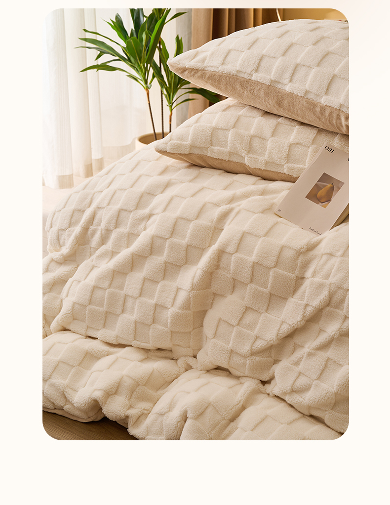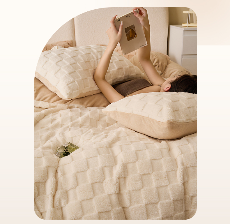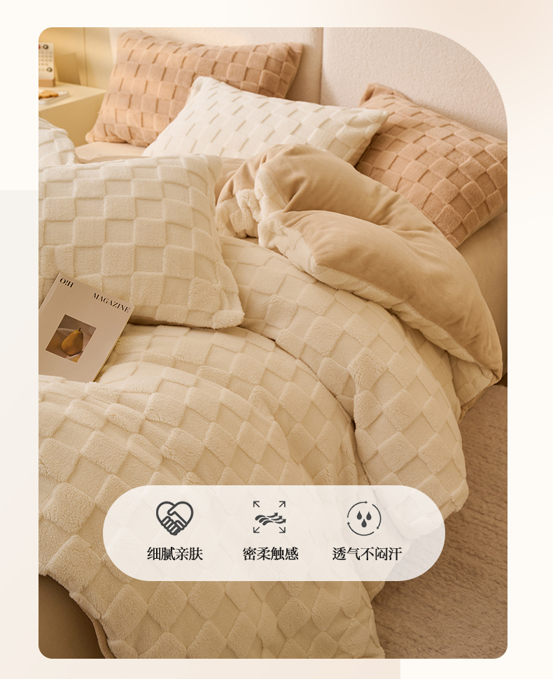 • 91家纺网 家纺一手货源 找家纺 晨曦家纺 2025新款加厚高克重230克塔芙绒牛奶绒单被套-初暖系列 初暖-白拼奶咖