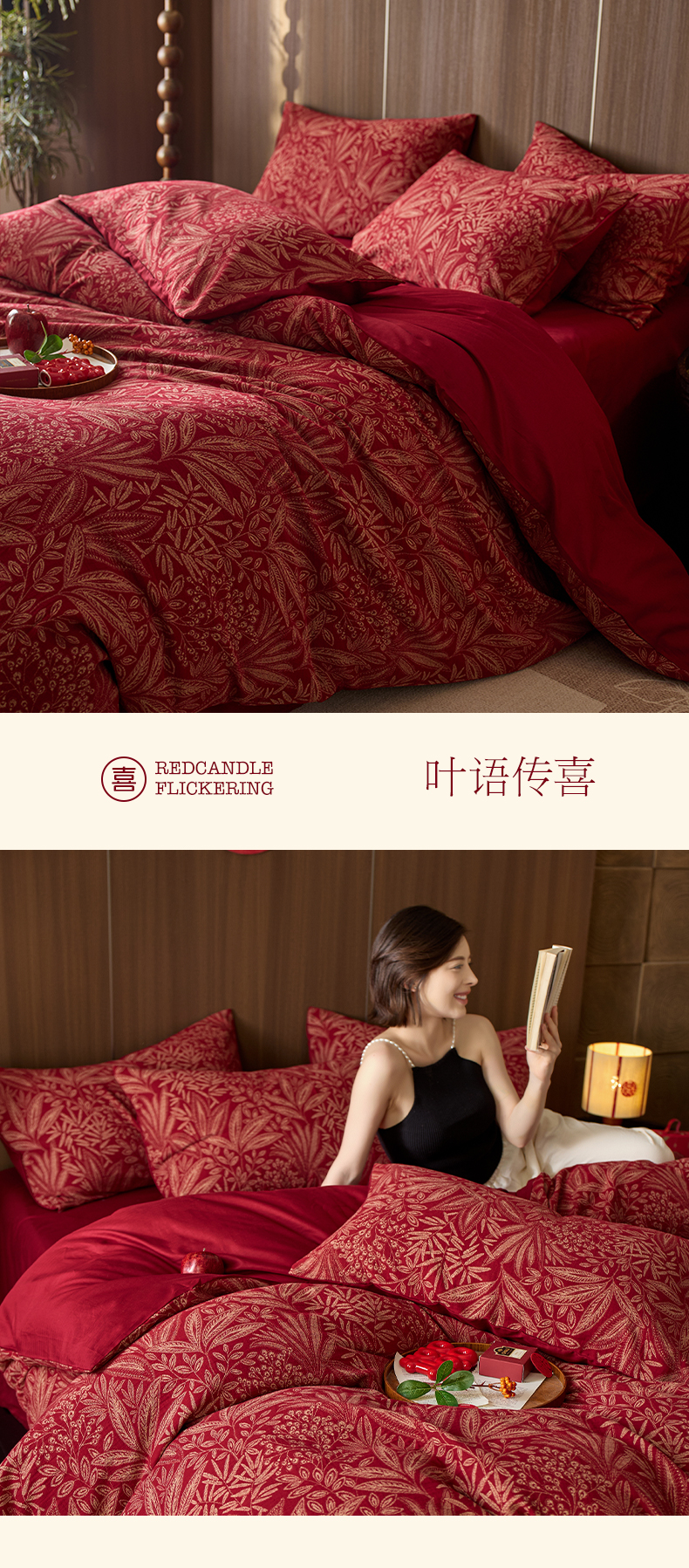 (总)千朵森 2025新款全棉色织提花大红婚庆四件套,囍意满床,囍韵繁花,叶语传喜