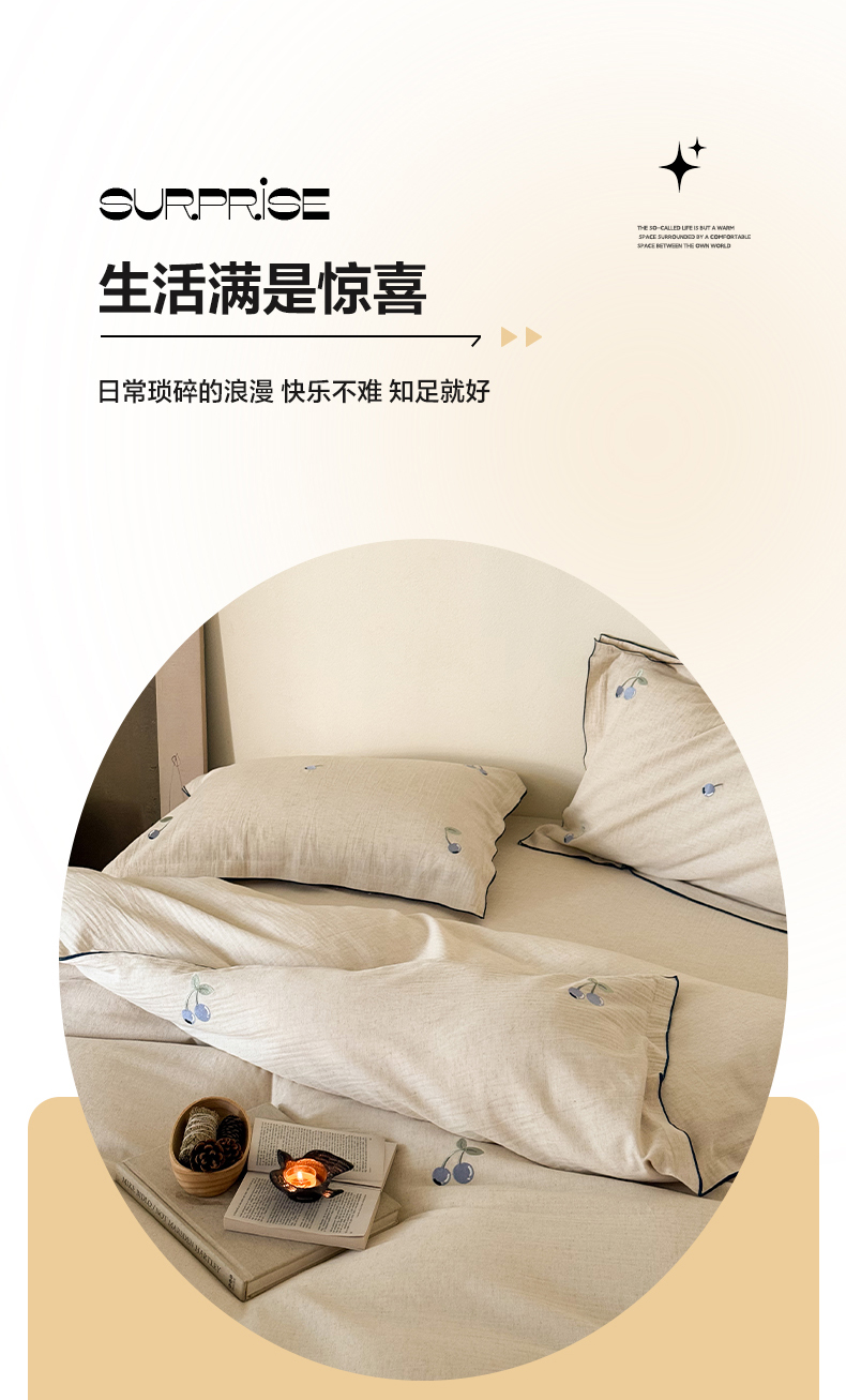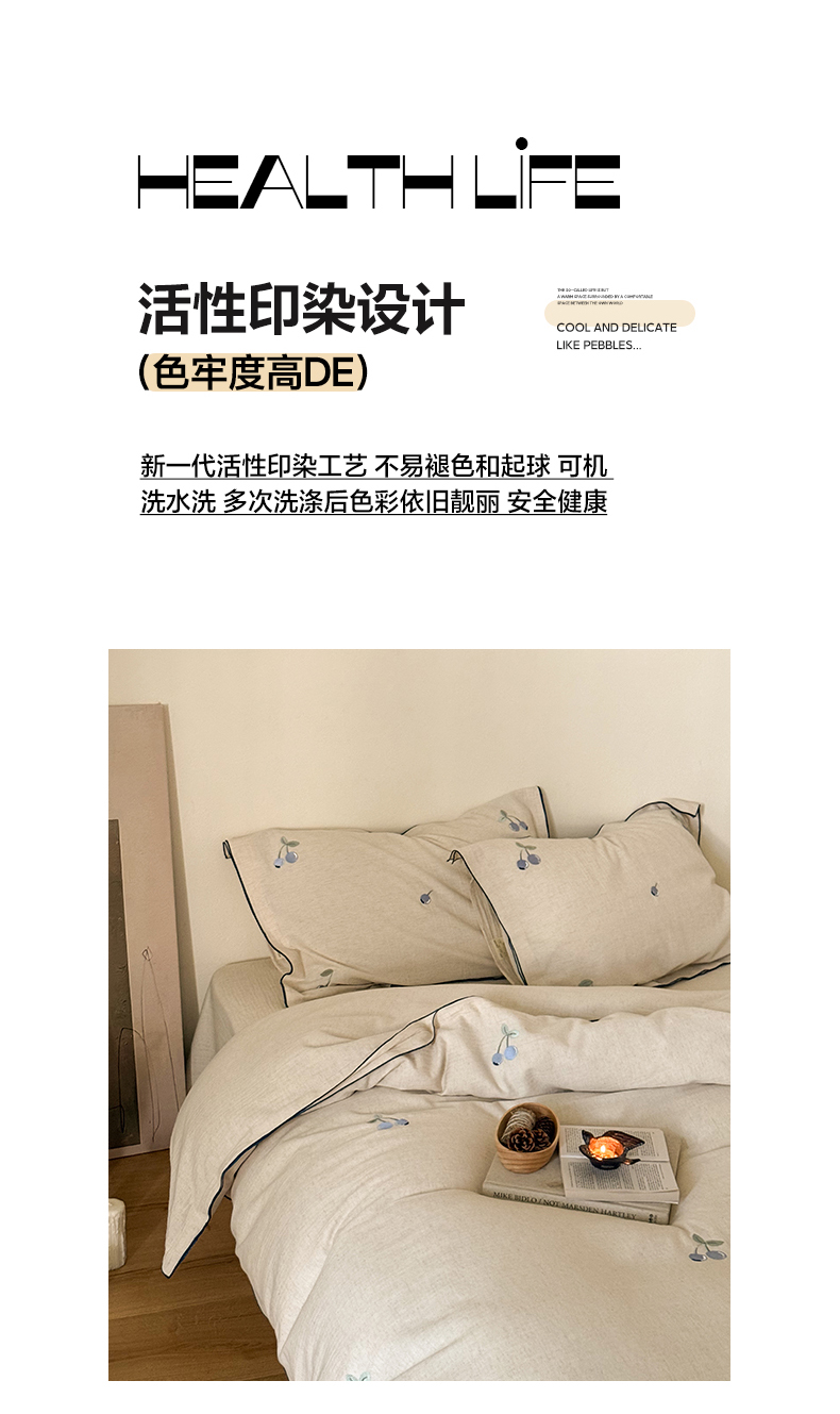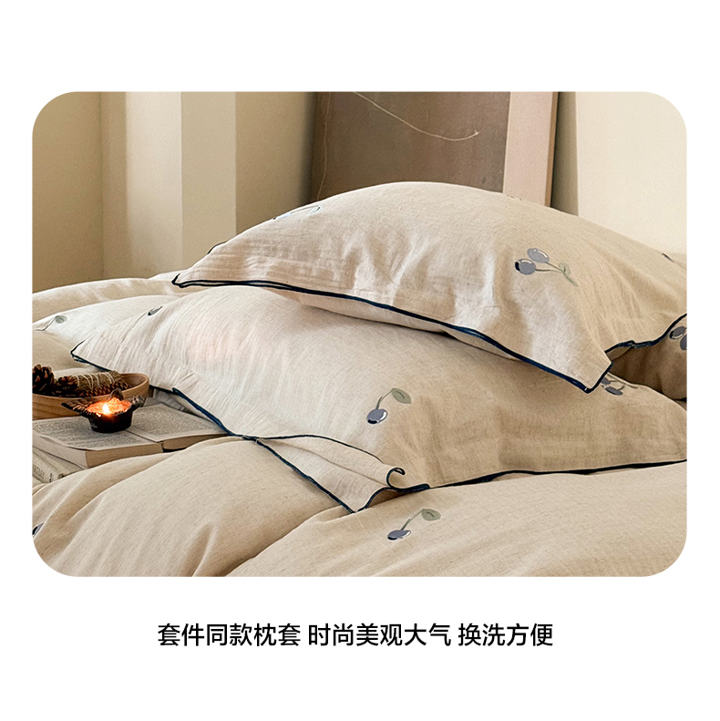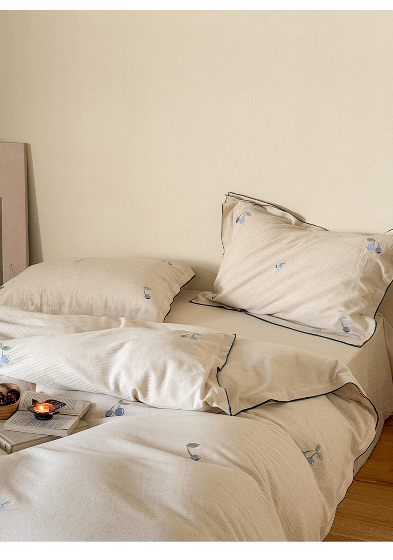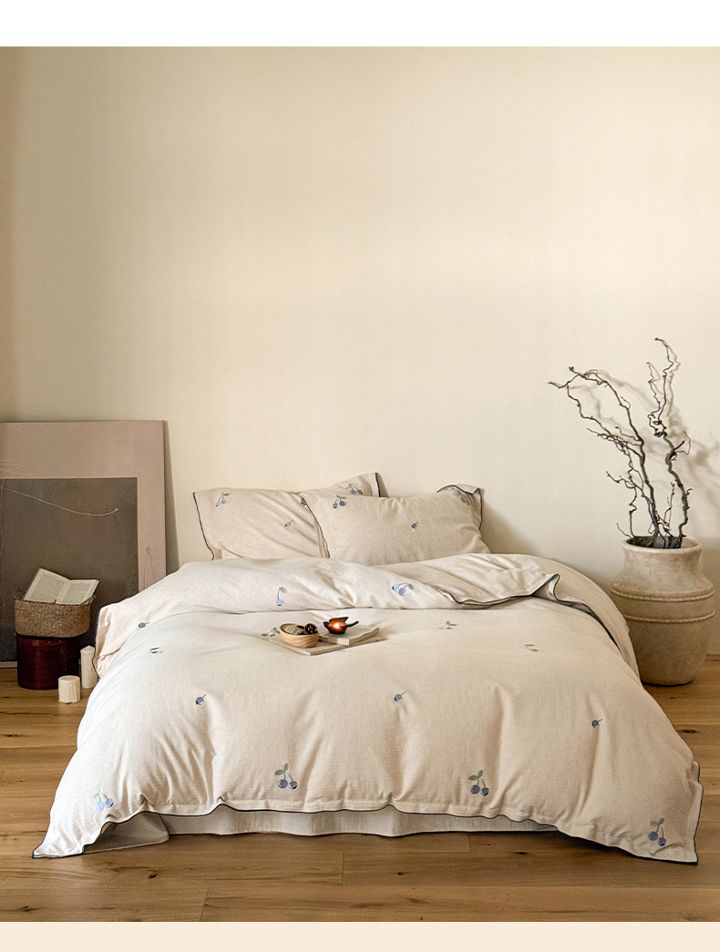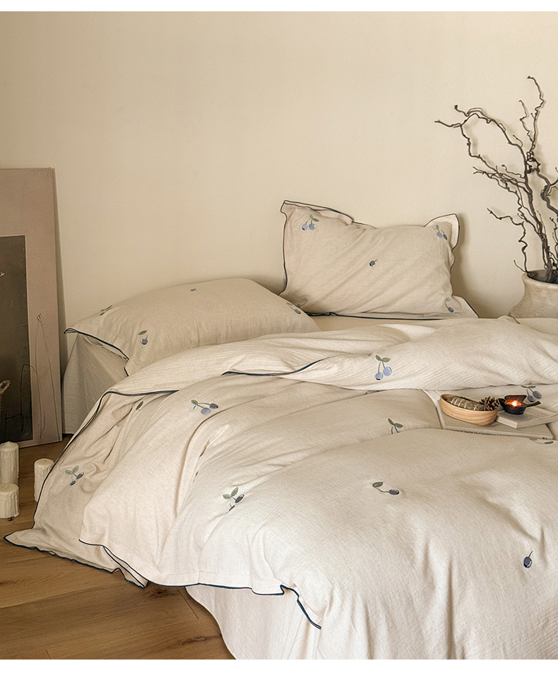 商品名称:(总)华超针织 2025新款棉麻密拷边刺绣四件套-蓝莓