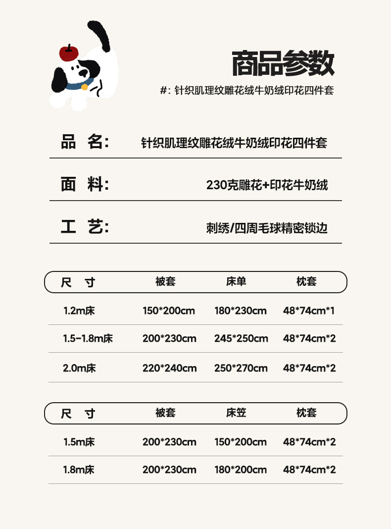 (总)圆岛家纺 2023新款比熊小狗秋冬牛奶绒保暖四件套,比熊宝贝