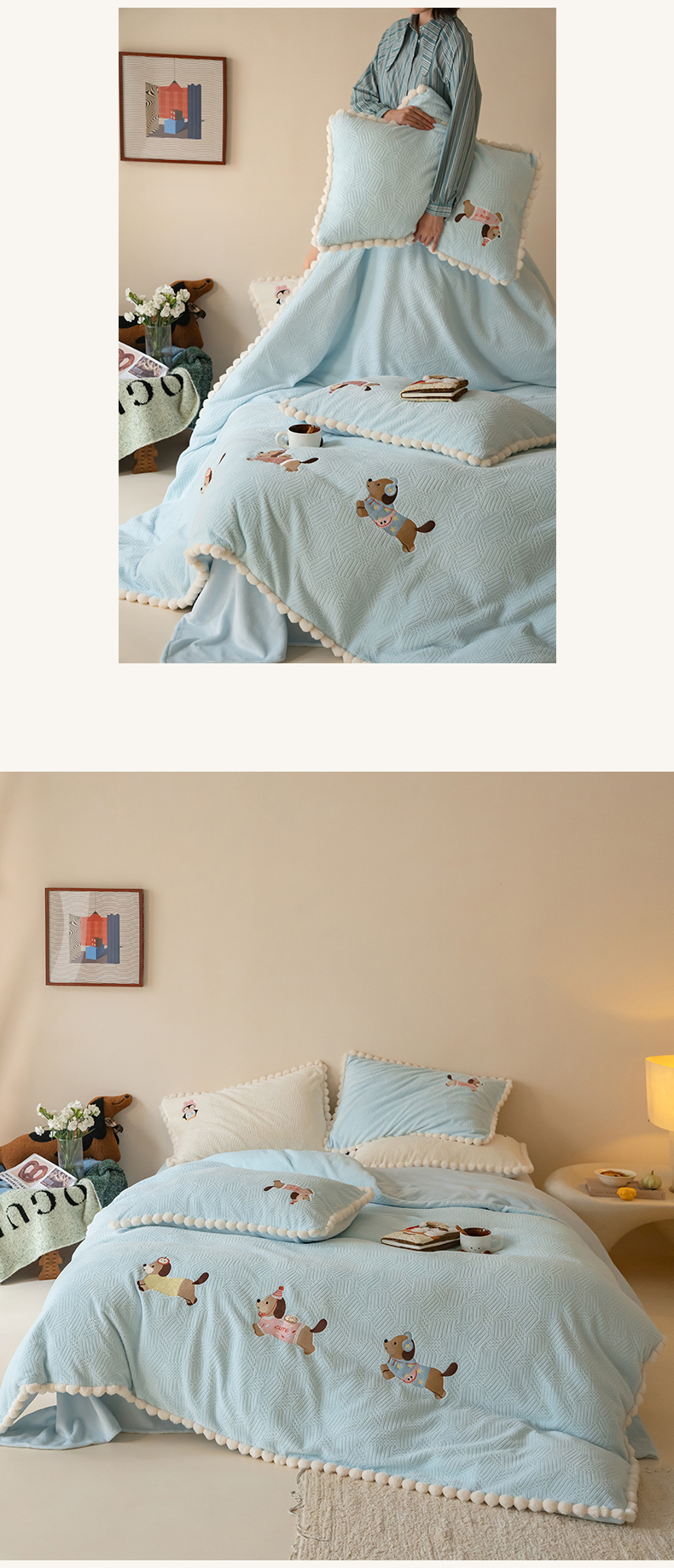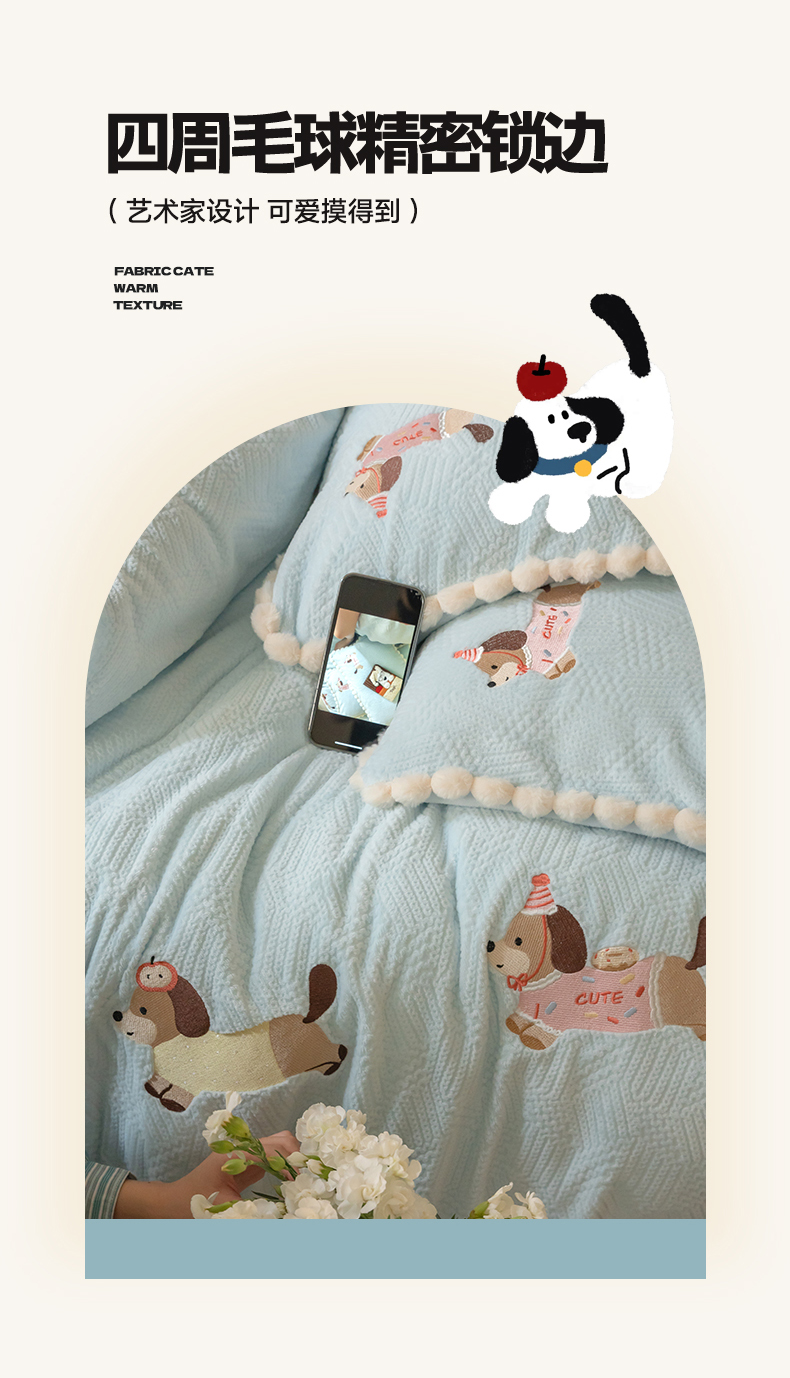 (总)圆岛家纺 2025新款泰迪绒毛巾绣牛奶绒四件套,冬日猫,腊肠狗,面包熊,雪地企鹅,雪纳瑞