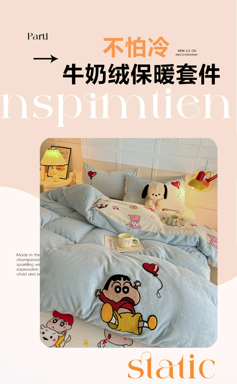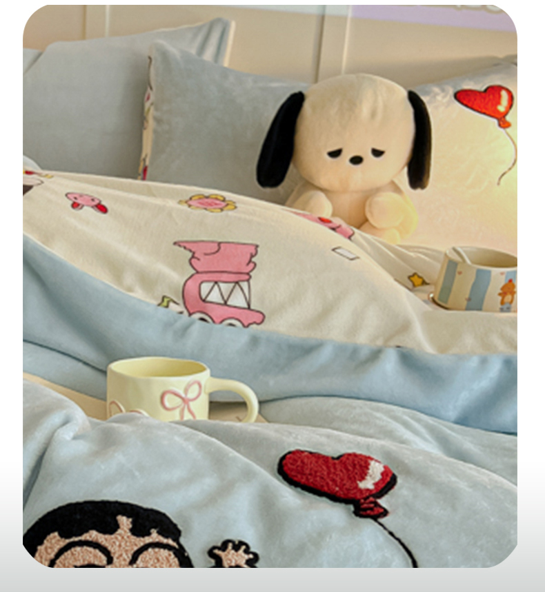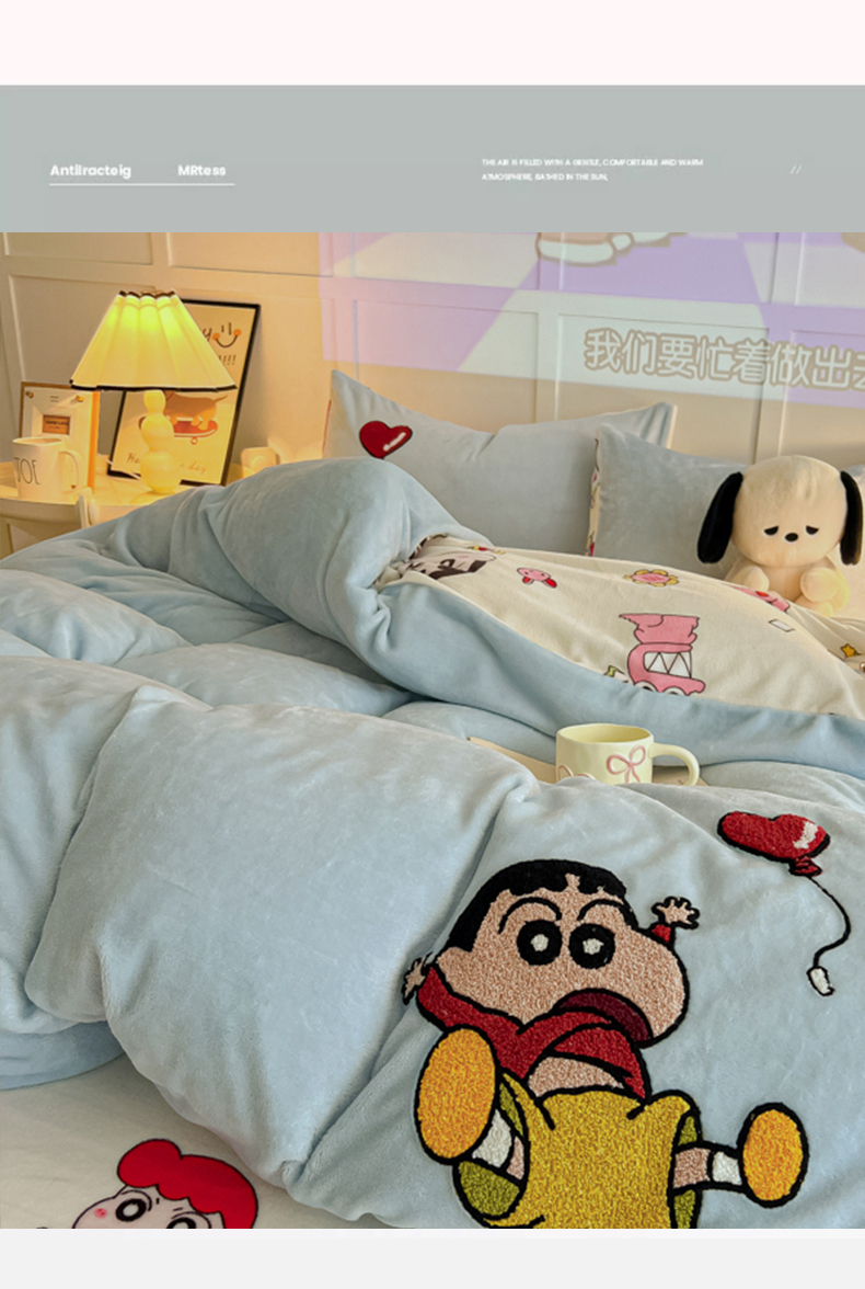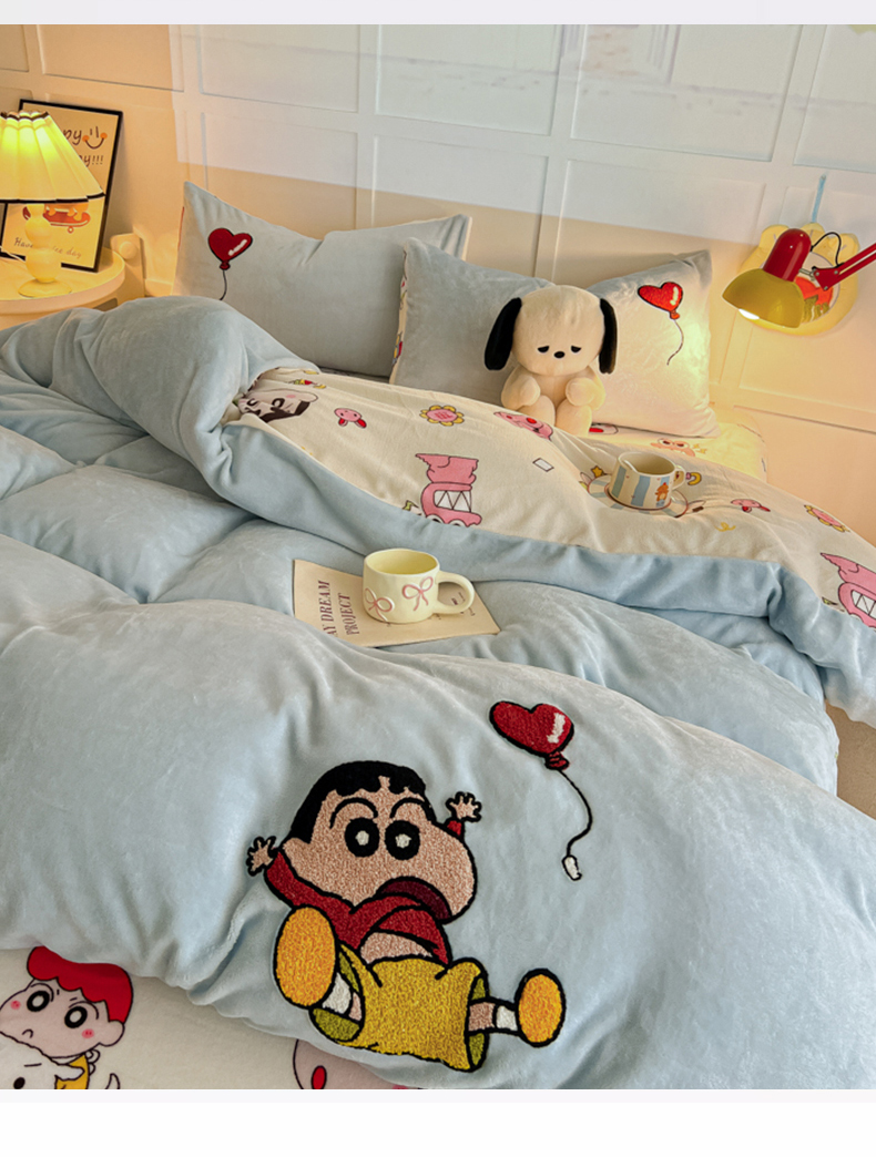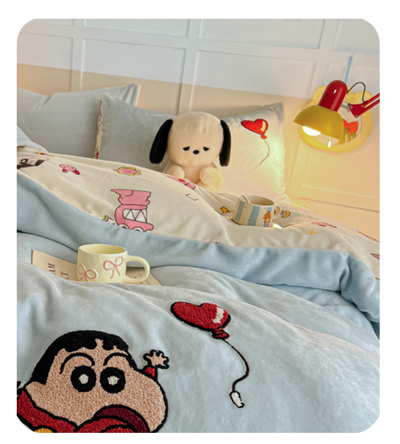 当前位置: 91家纺网 > 商品网购 > 床品套件 > 四件套 > 牛奶绒四件套 > 子钦家纺 2025新款热款牛奶绒蜡笔小新系列四件套 新款调皮的小新同学天蓝