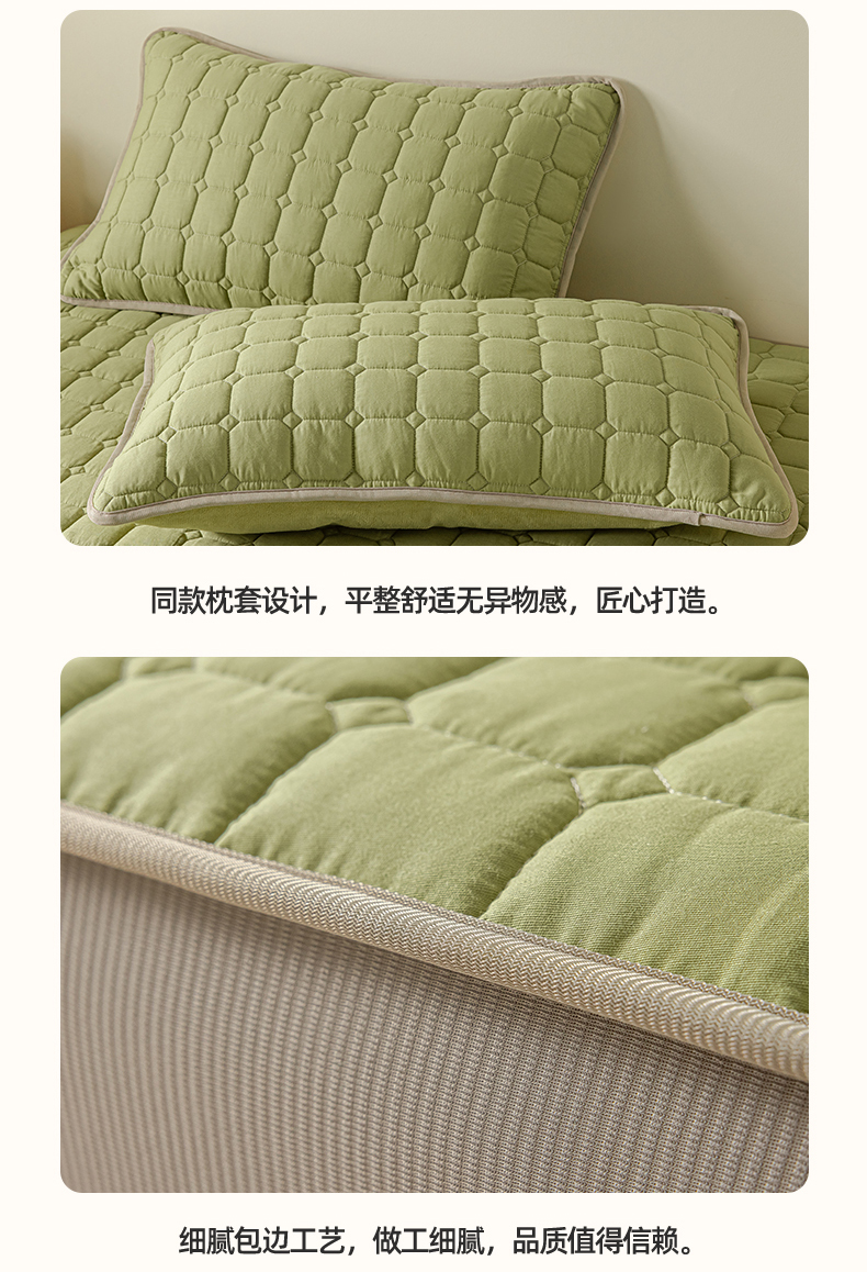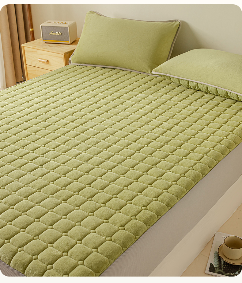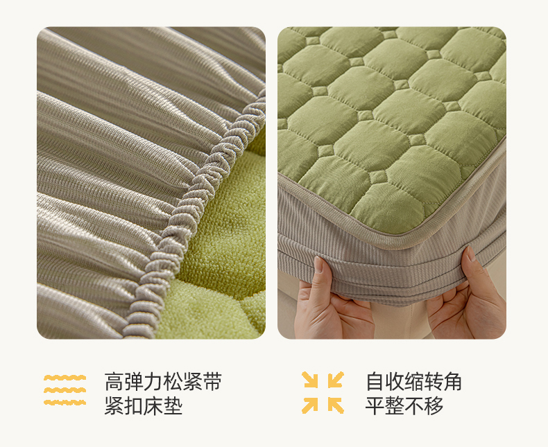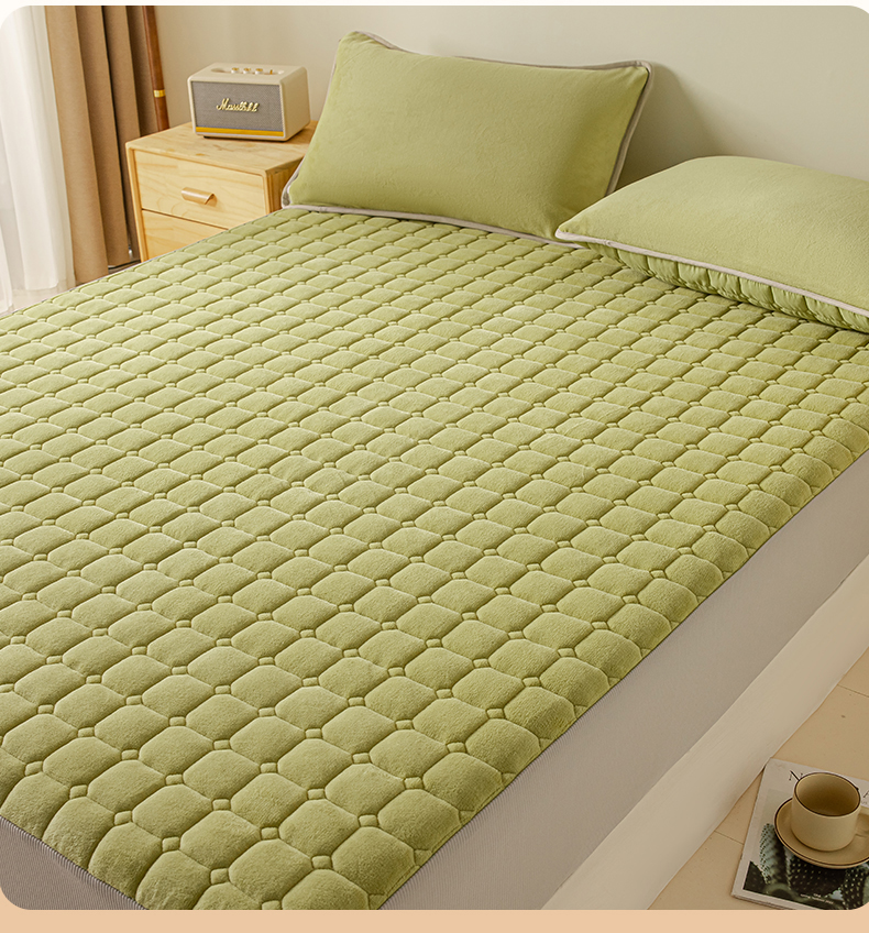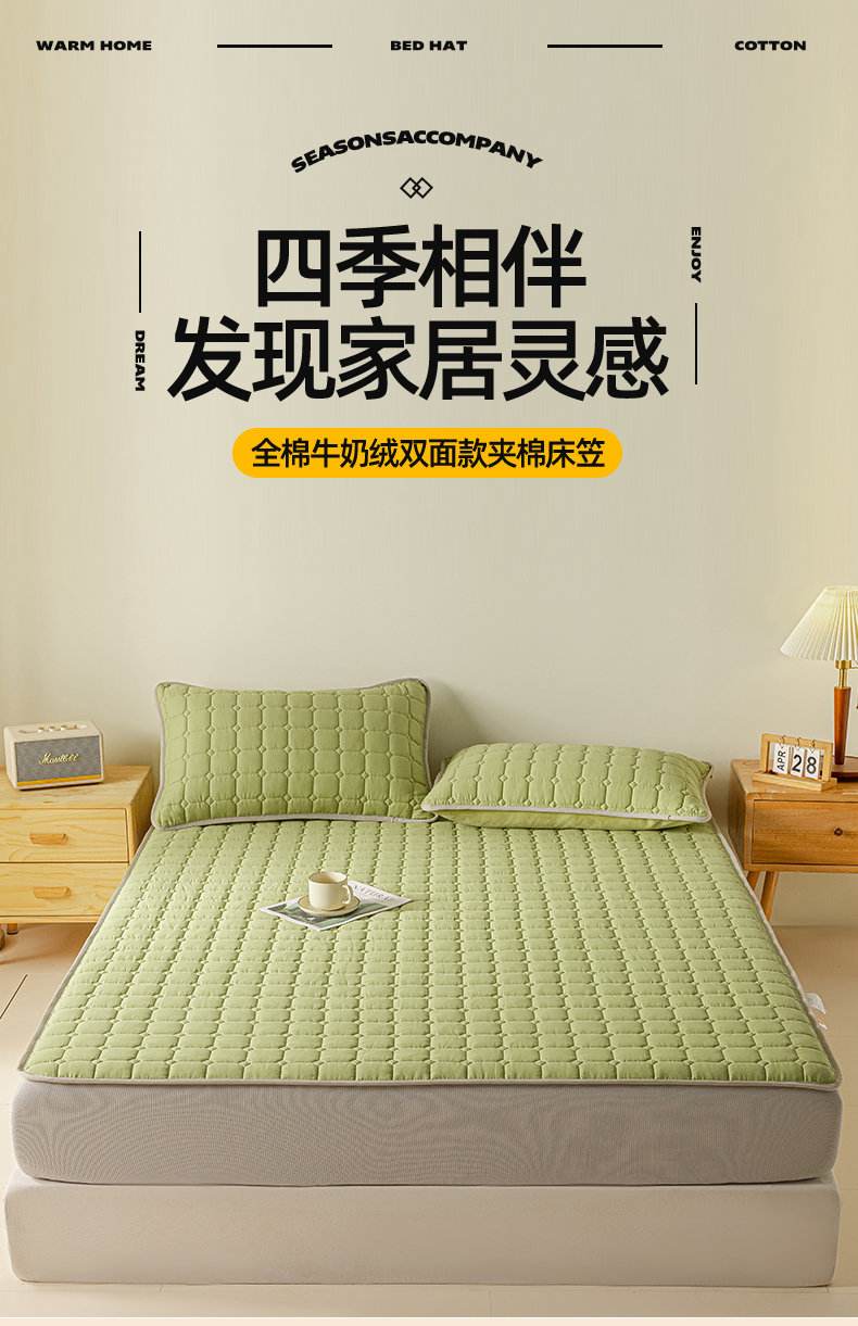 • 91家纺网 家纺一手货源 找家纺 2025新款全棉牛奶绒双面款夹棉床笠 牛油果绿