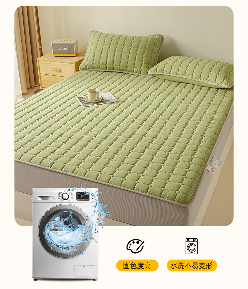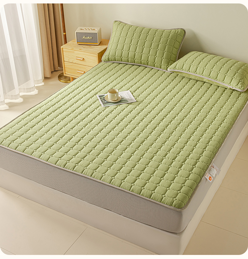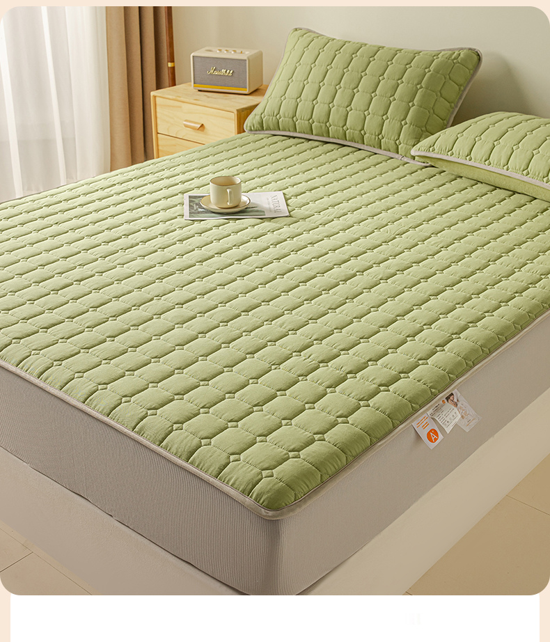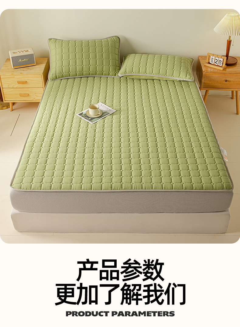 • 91家纺网 家纺一手货源 找家纺 2025新款全棉牛奶绒双面款夹棉床笠 牛油果绿