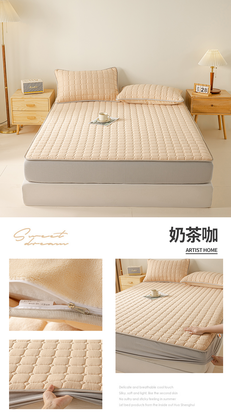 (总)2025新款全棉牛奶绒双面款夹棉床笠,高级灰,奶茶咖,奶油白,牛油果绿,少女粉,深咖,雾霾蓝