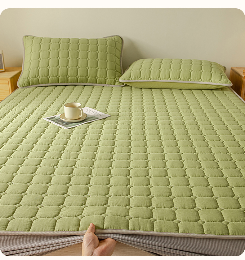 2025新款全棉牛奶绒双面款夹棉床笠 牛油果绿