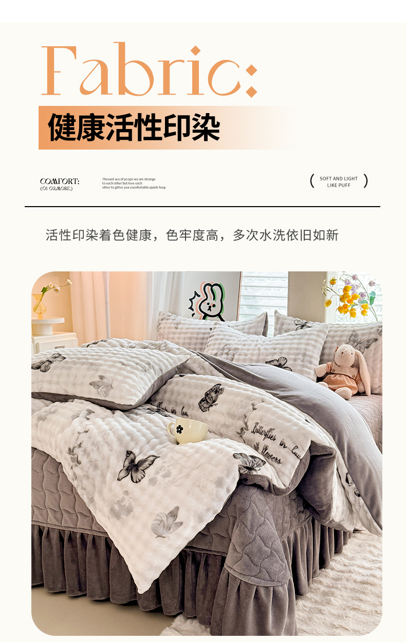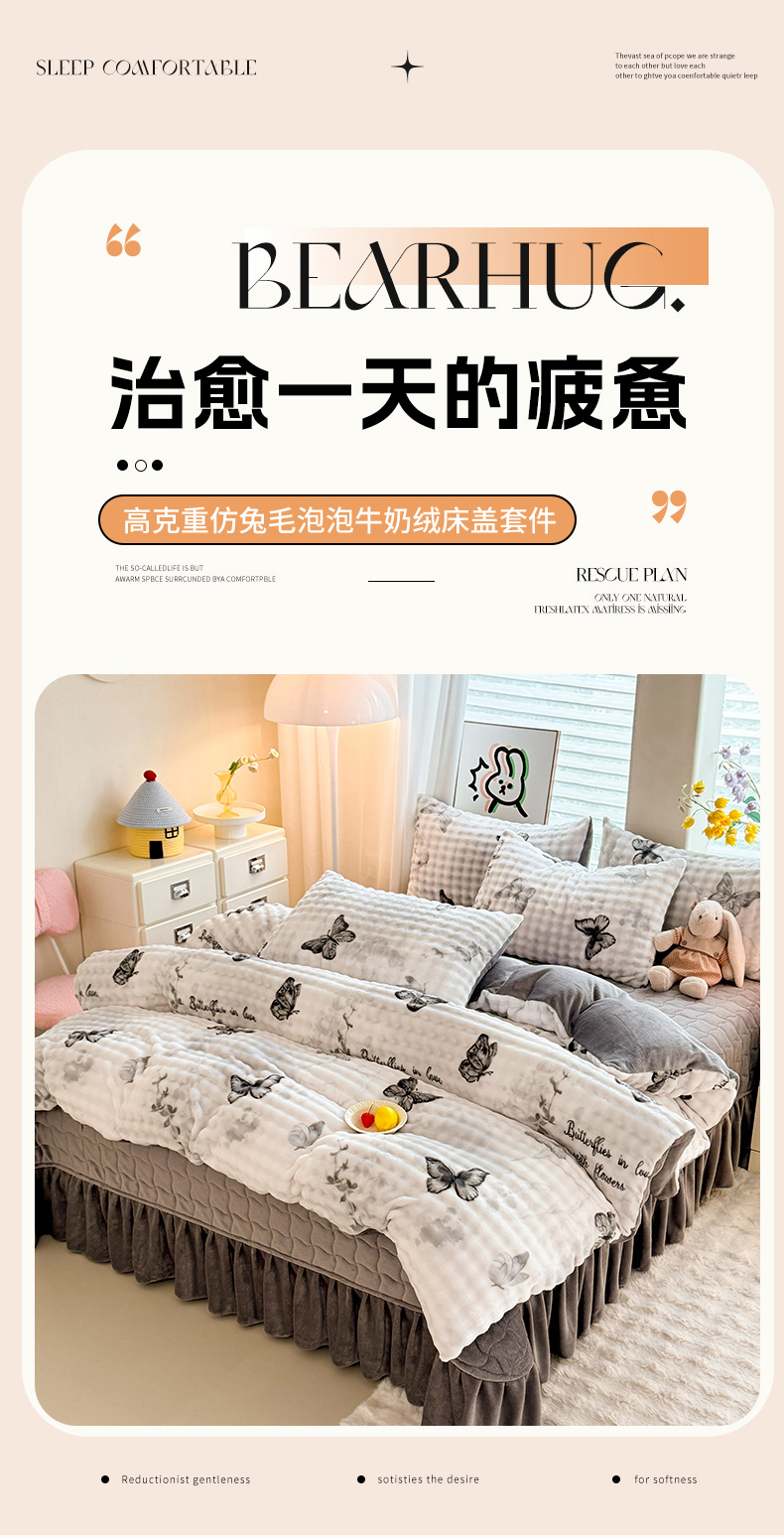 当前位置: 91家纺网 > 商品网购 > 床品套件 > 四件套 > 牛奶绒四件套 > 金盛皇朝家纺 2025新款高克重仿兔毛泡泡牛奶绒床单床盖单件三件四件套 花枝蝶梦