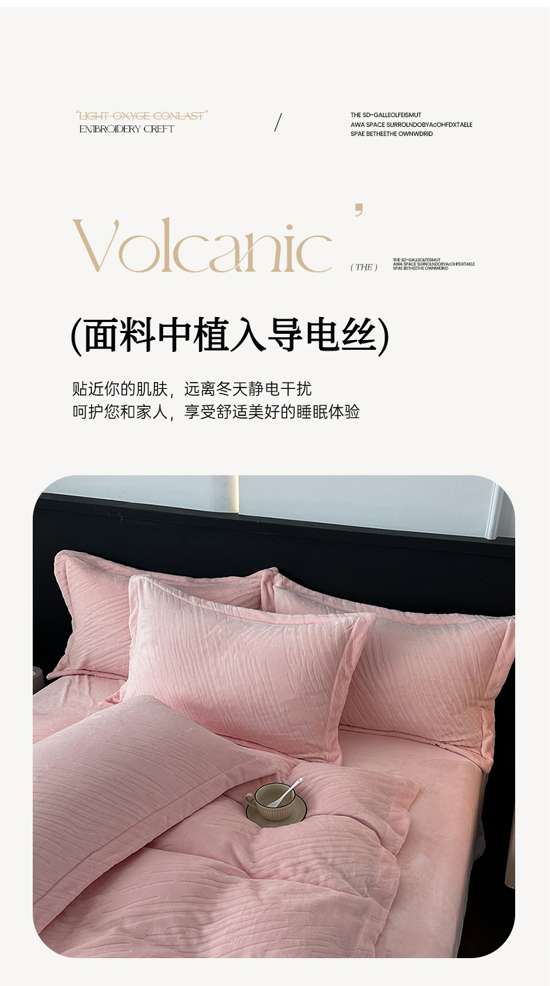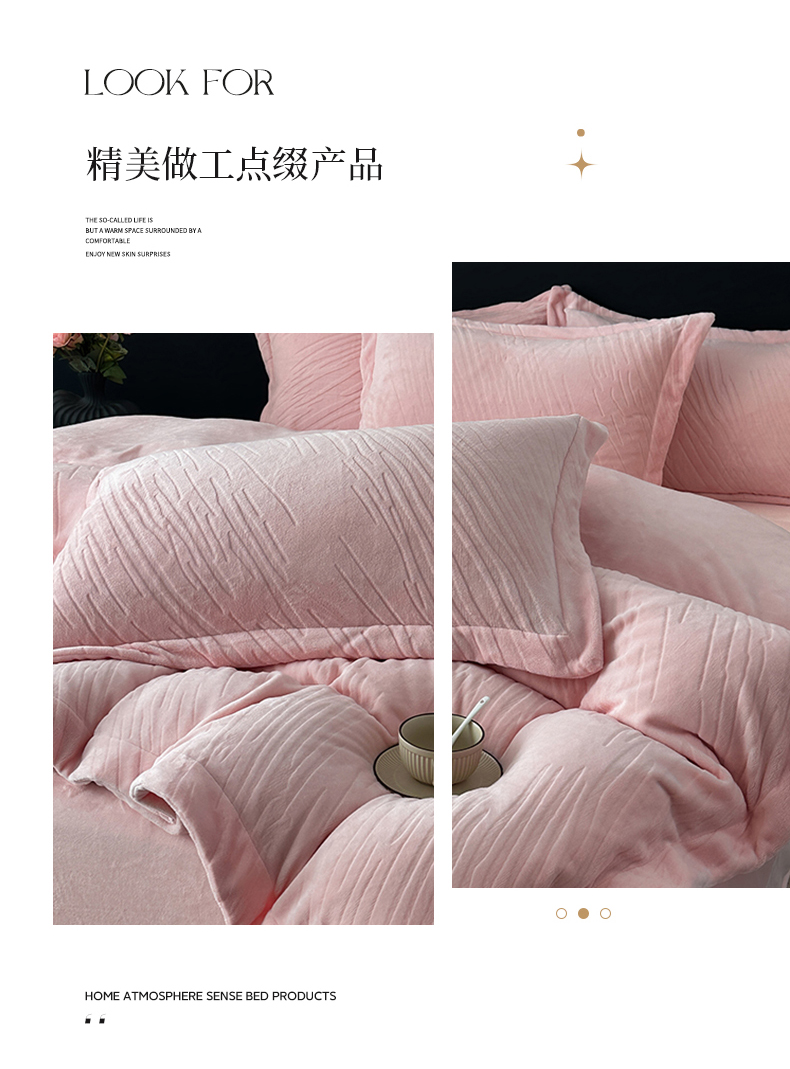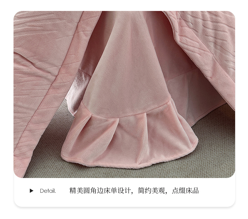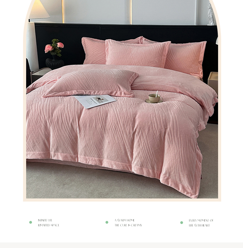 (总)乐嘉盈 2025年新款纯色雕花牛奶绒四件套,粉色