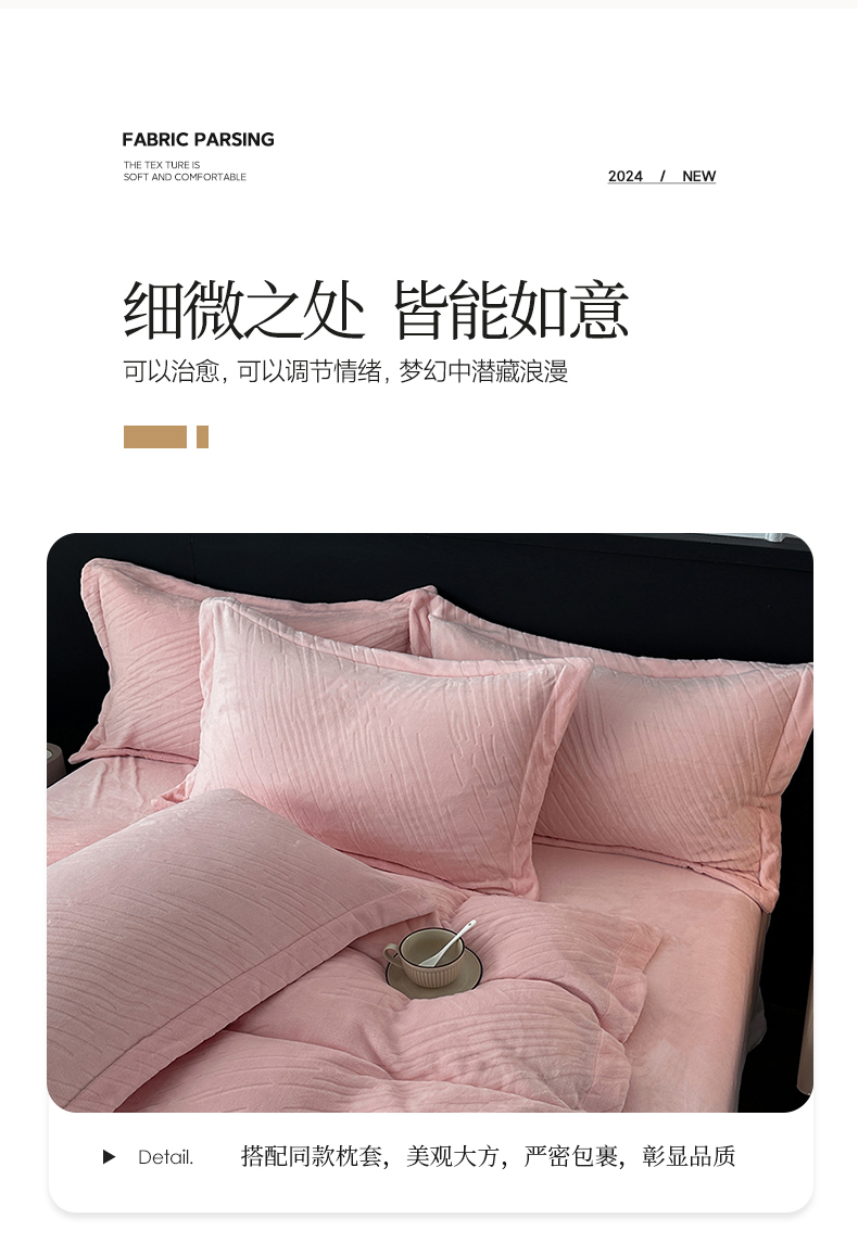 (总)乐嘉盈 2025年新款纯色雕花牛奶绒四件套