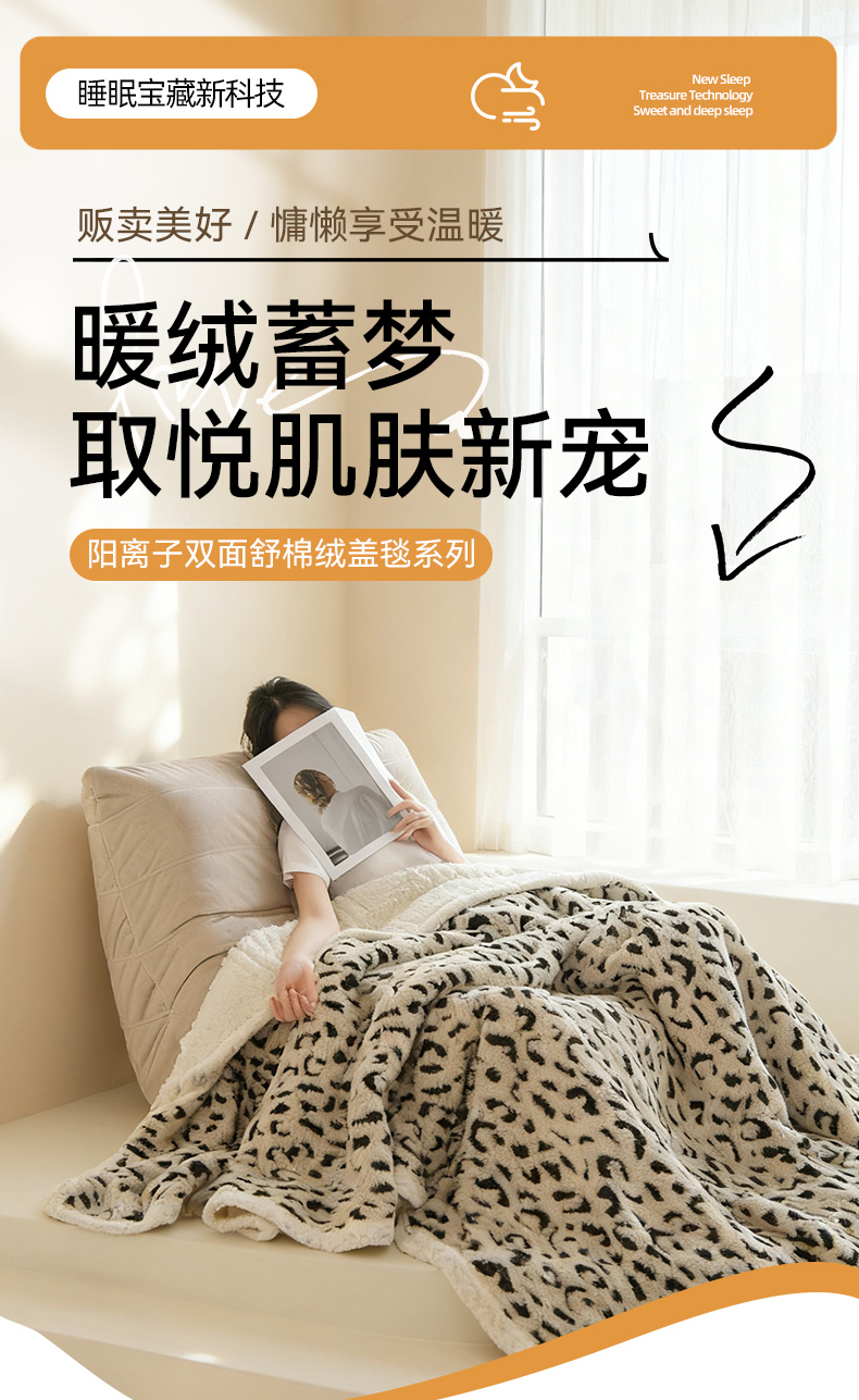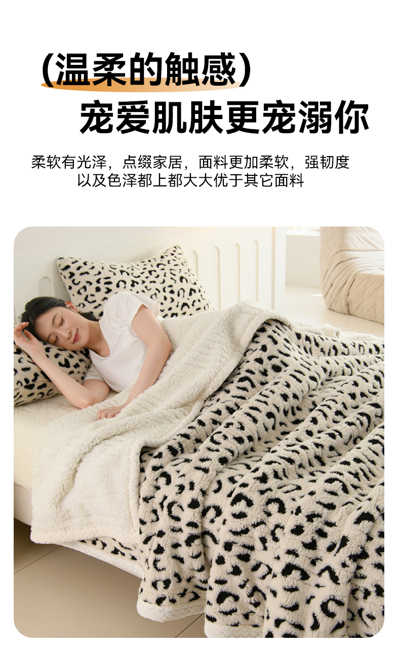 (总)圣楚家纺 2025新款豹纹羊羔绒双层毯,豹纹,杉影茶绿,杉影奶白
