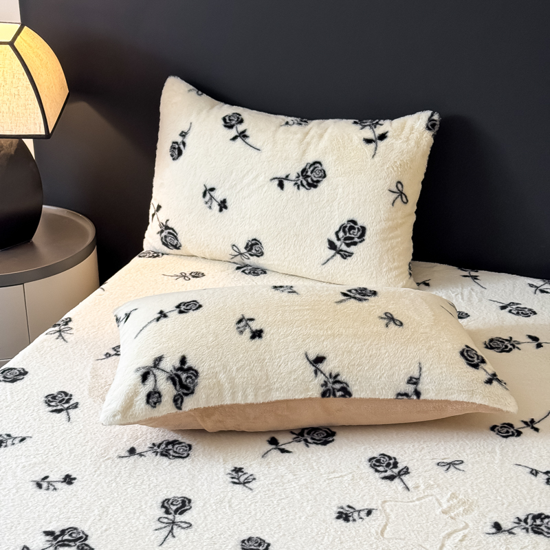 商品名称:小叮当家纺仓储工厂店 2025新款美拉德印花兔毛单枕套 枕套单件 线条玫瑰
