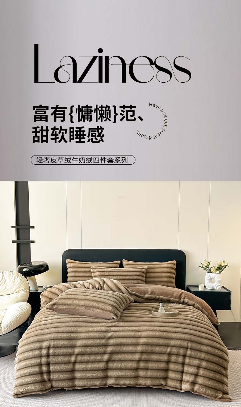 当前位置: 91家纺网 > 商品网购 > 床品套件 > 四件套 > 兔毛绒四件套 > 乐窝家纺仓储 2025新款高端定制加厚抽条兔毛床裙款四件套美拉德支持跨境外贸 奶油白
