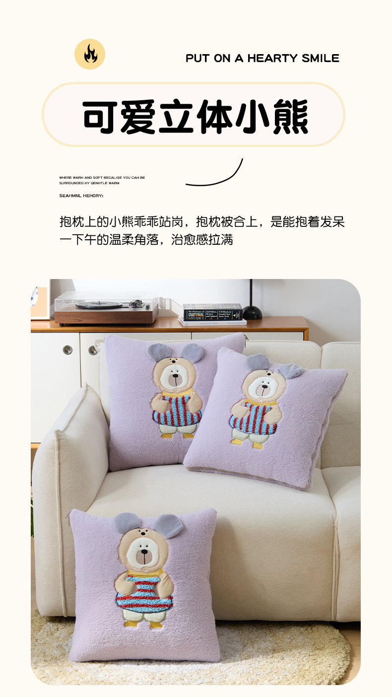 (总)金喜 2025新款高克重牛奶绒贴布卡通抱枕沙发靠枕午睡盖毯被绣萌趣男孩momo款,组合图仅供参考不可下单,秋波蓝,香芋紫,艾青绿,鸽子灰,蔷薇粉