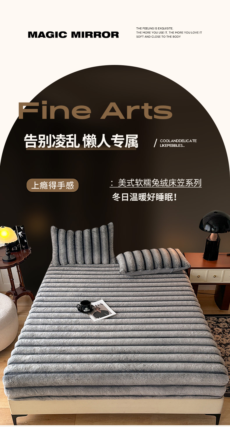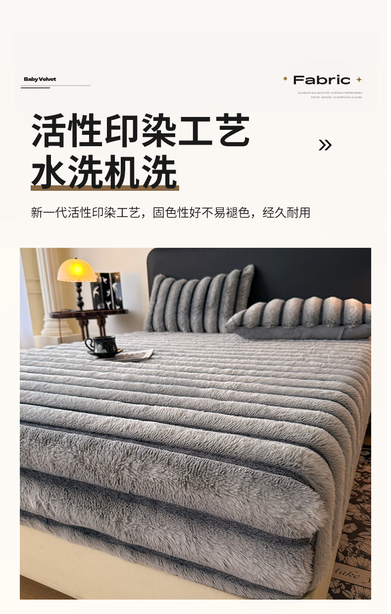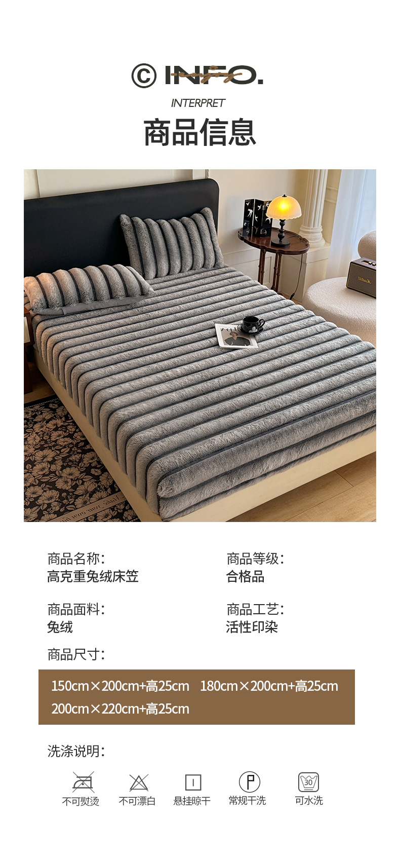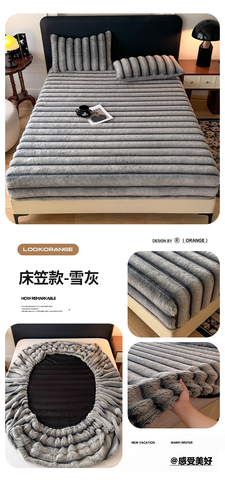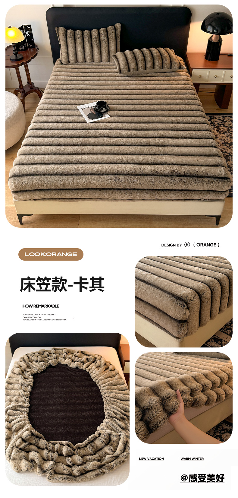 商品名称:(总)丝印良品 2025秋冬新款300克条纹兔绒床笠三件套