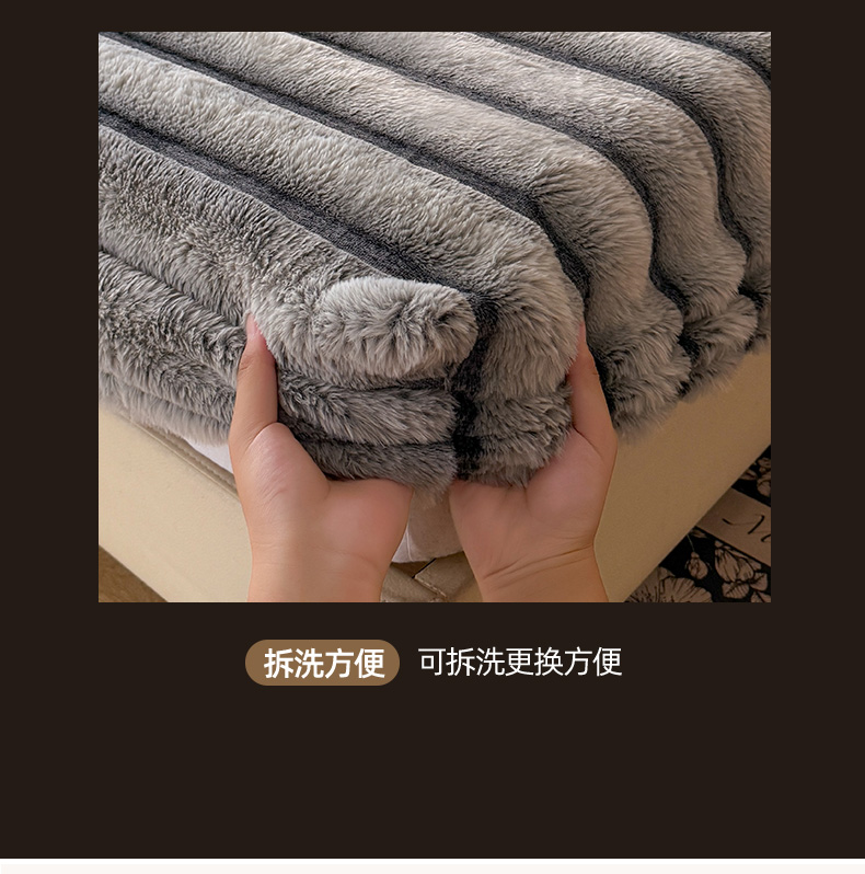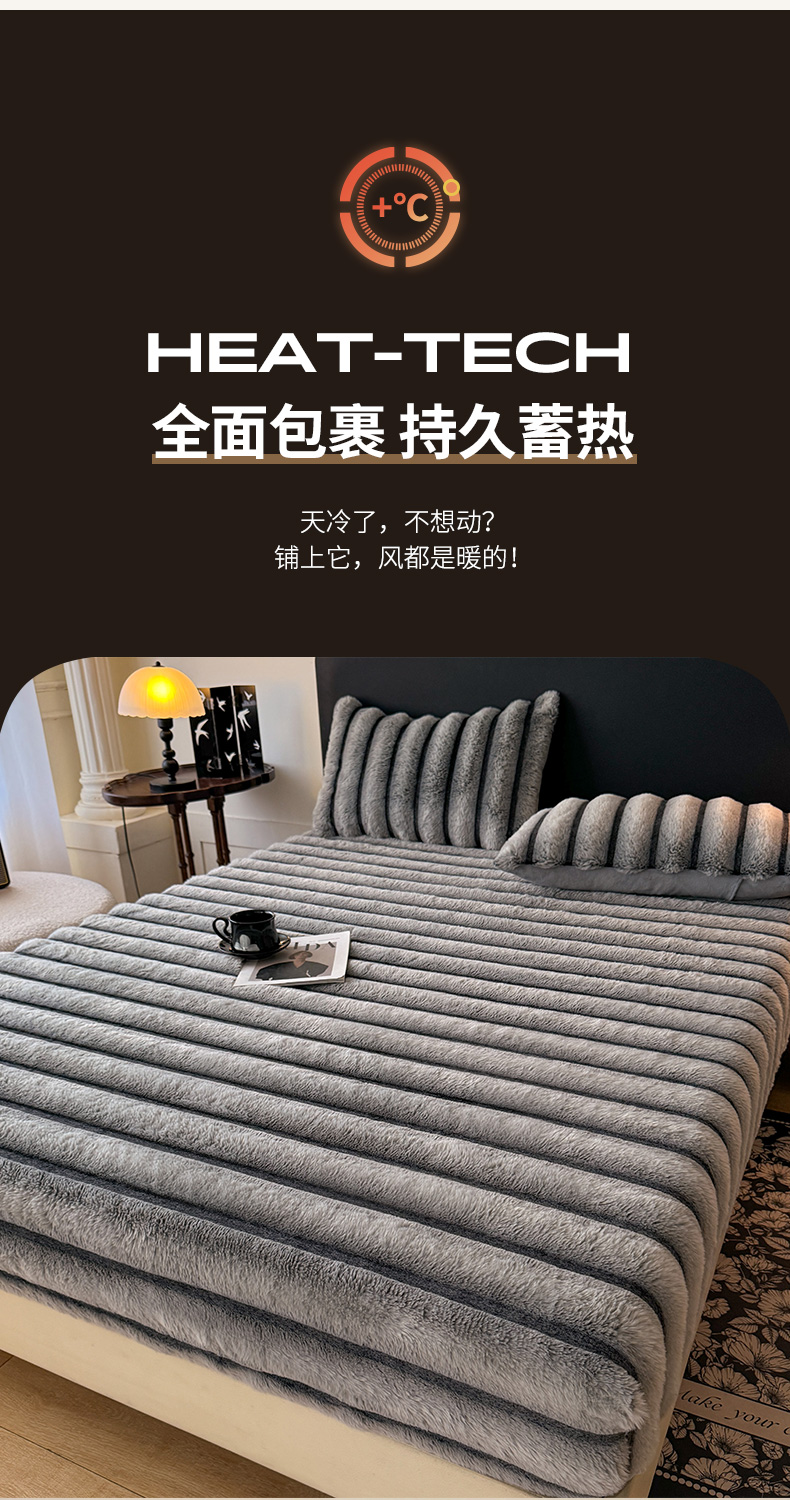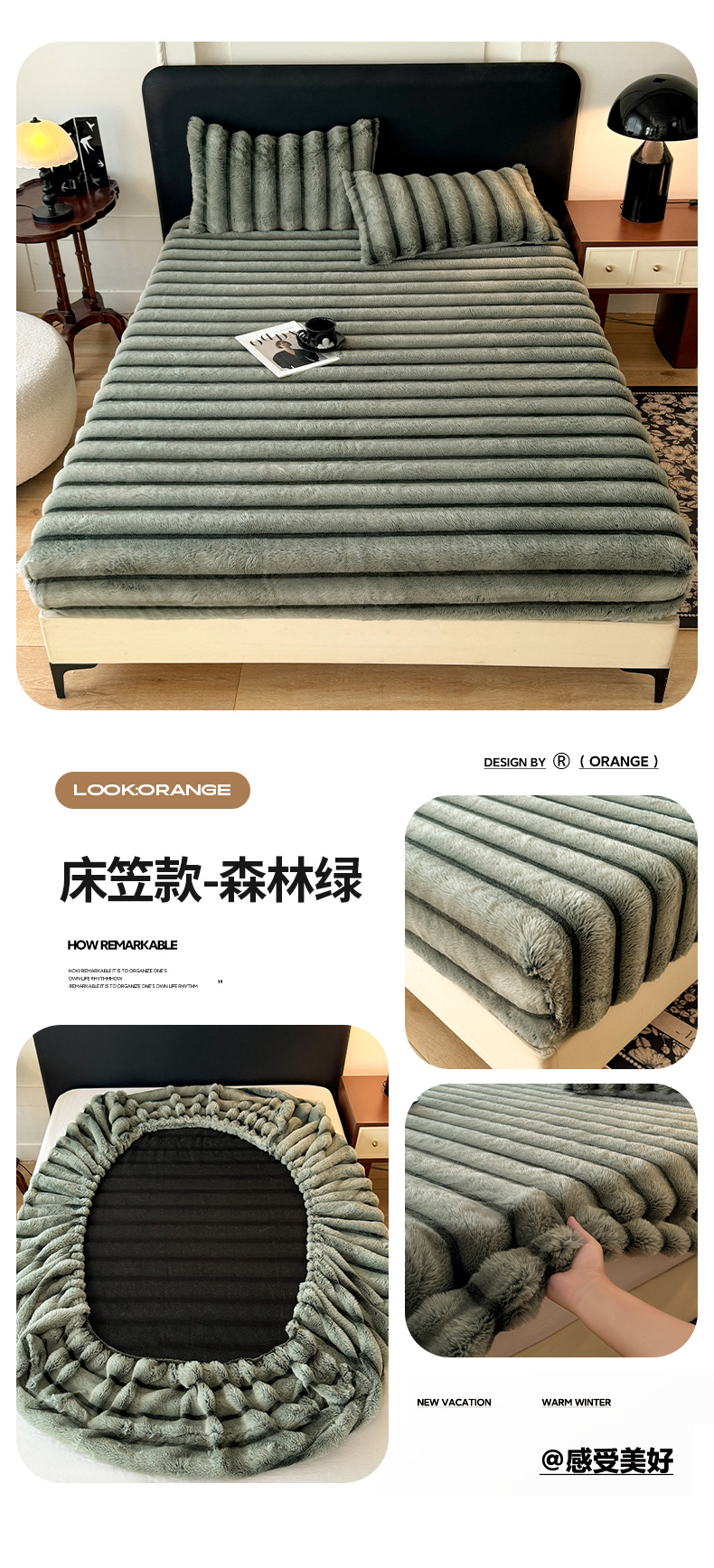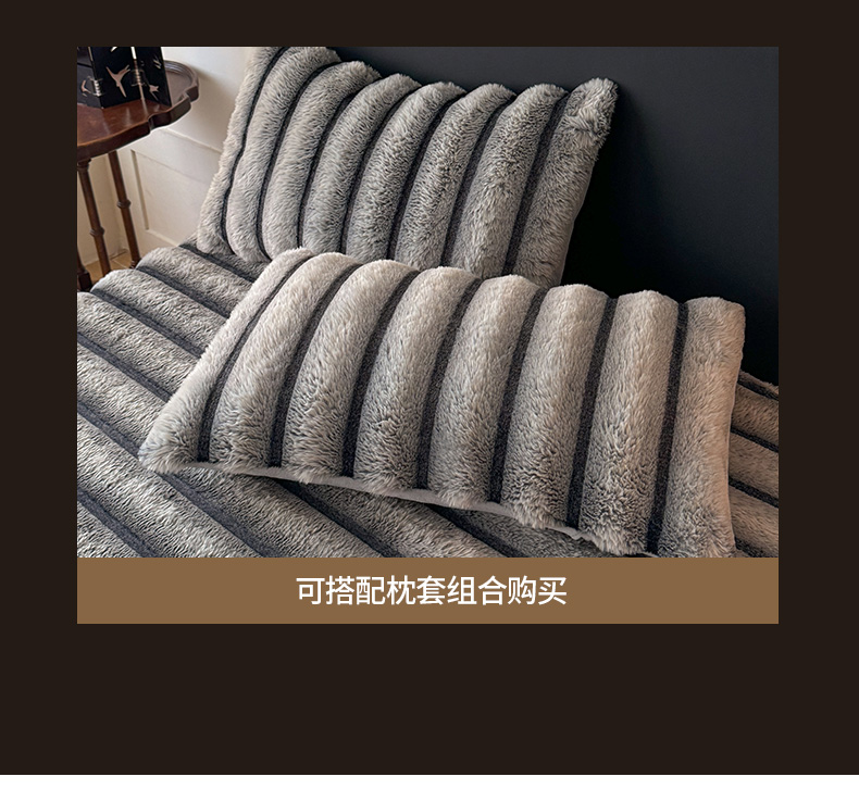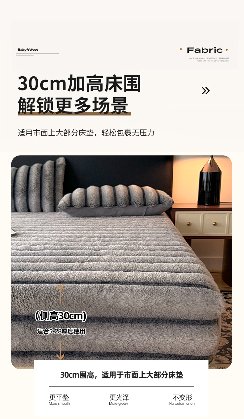 商品名称:(总)丝印良品 2025秋冬新款300克条纹兔绒床笠三件套