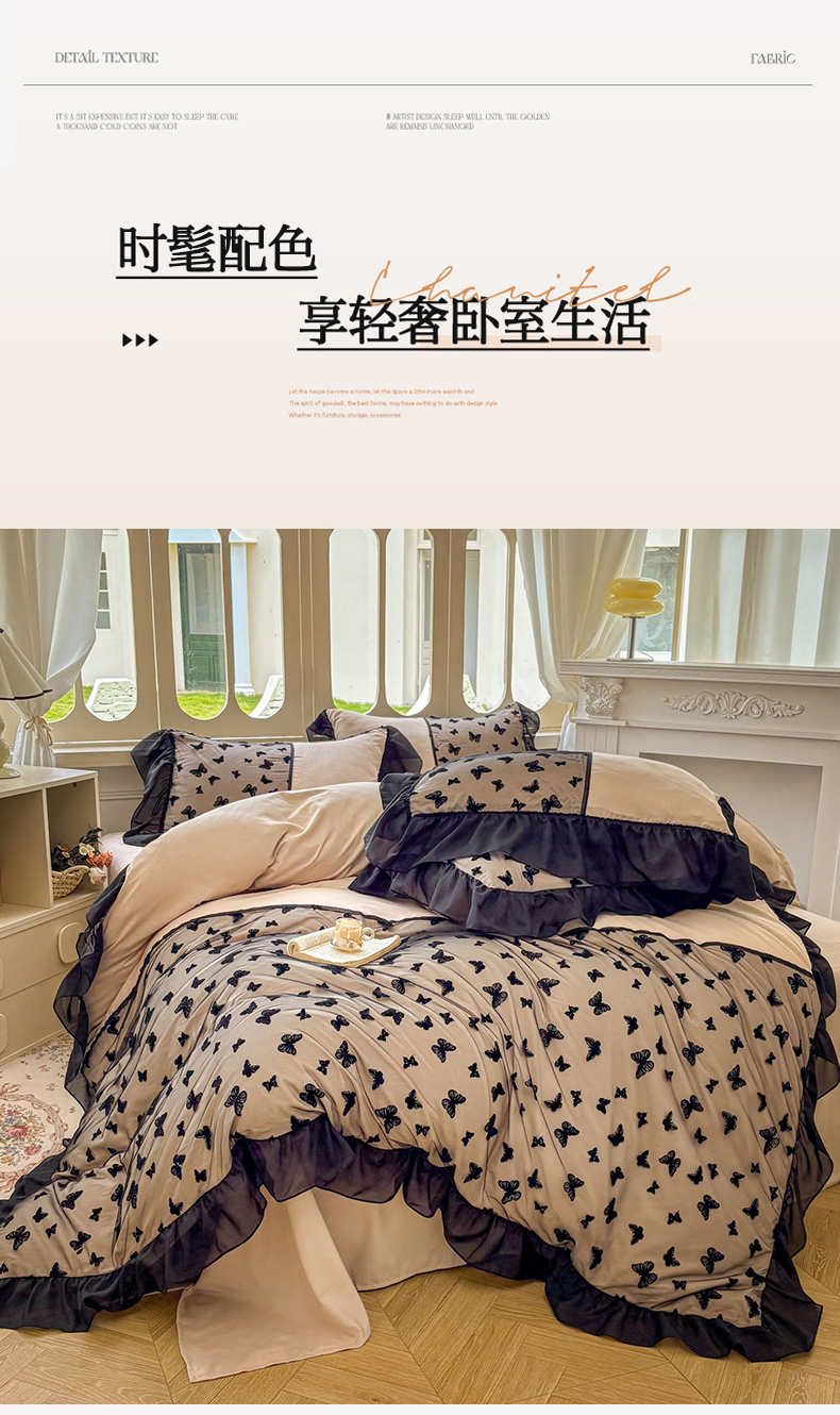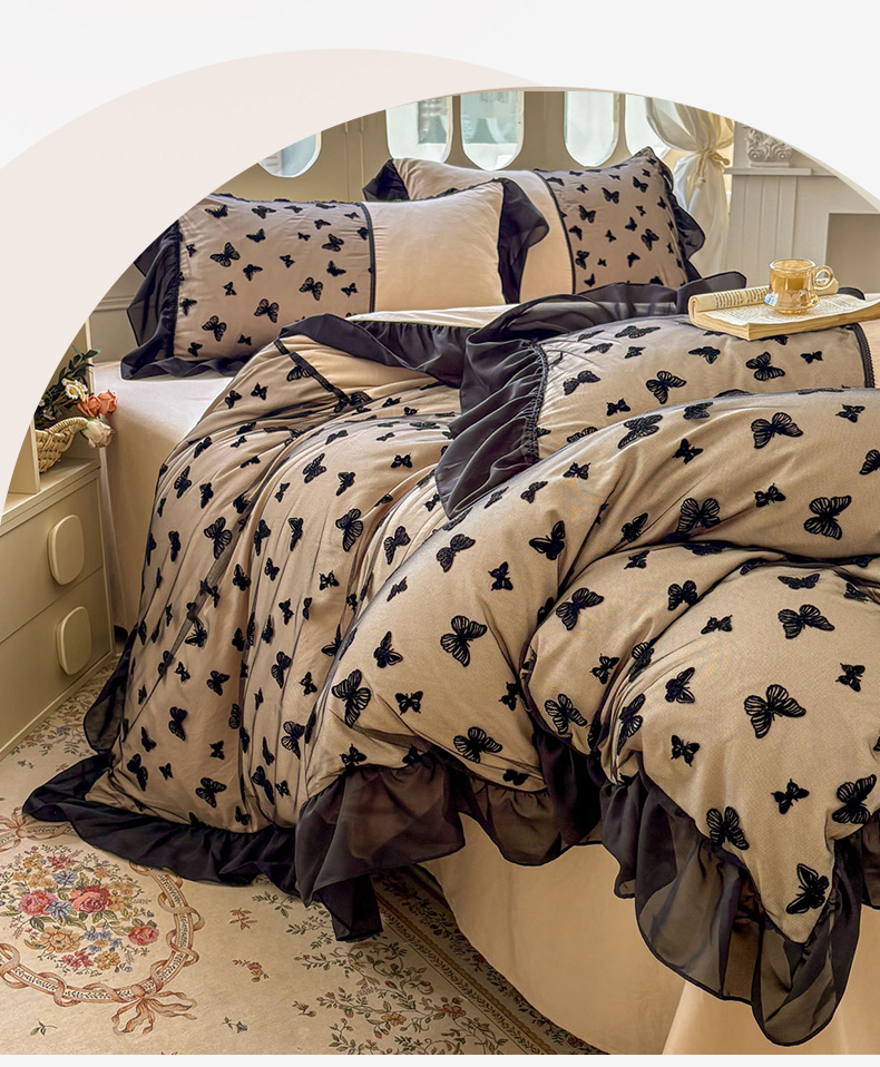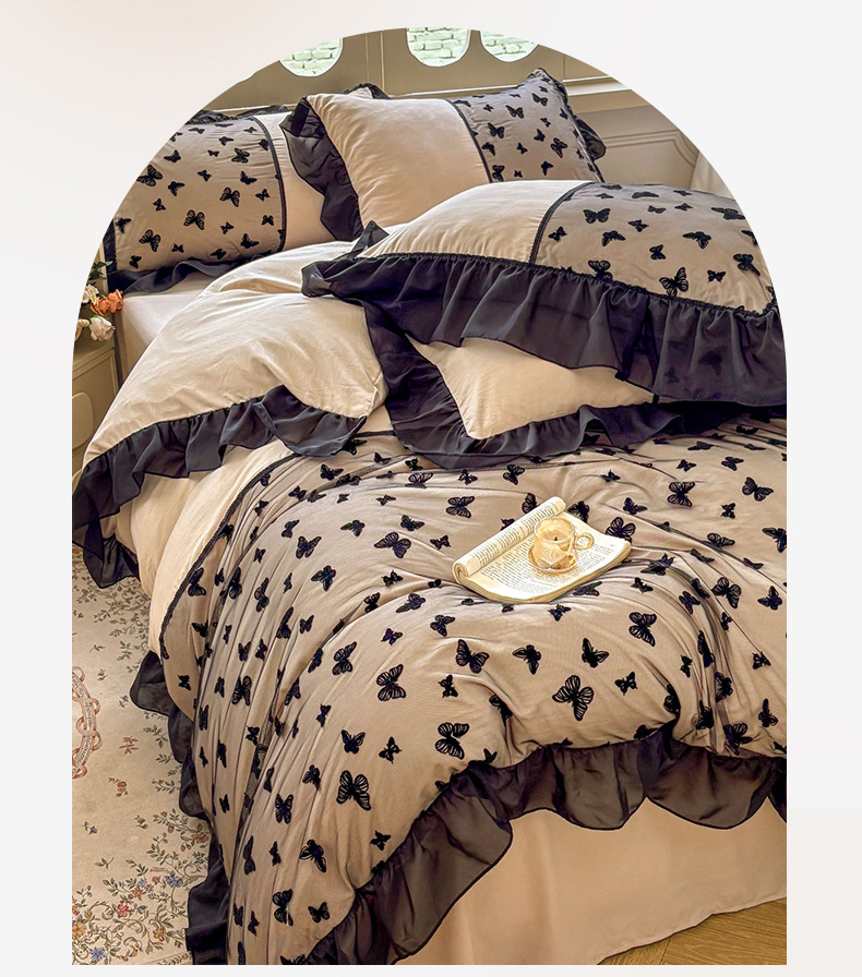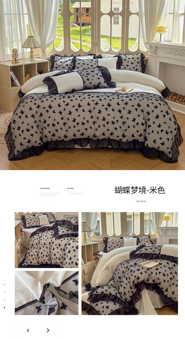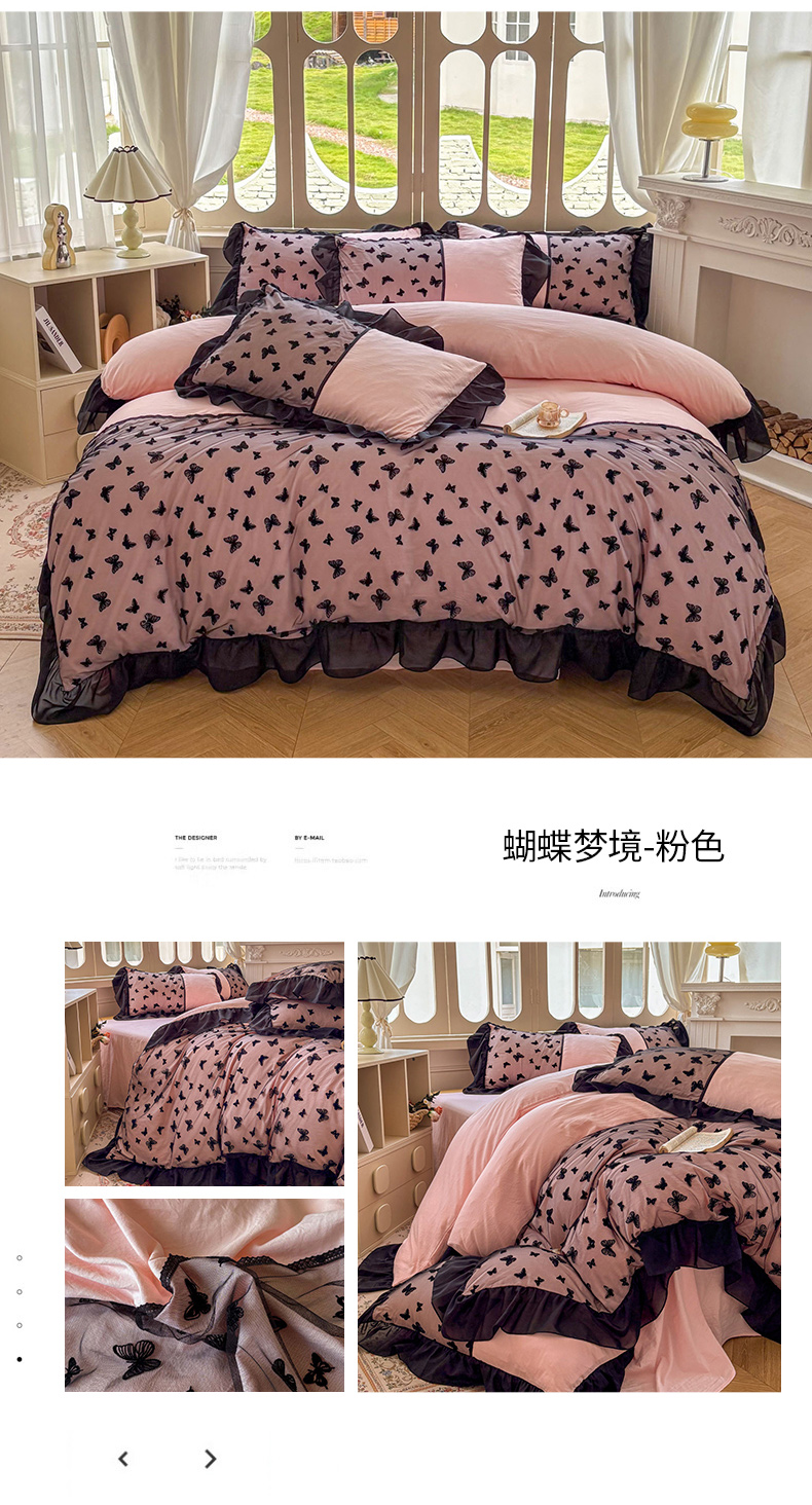 当前位置: 91家纺网 > 商品网购 > 床品套件 > 四件套 > 其它四件套 > 韩秀家纺 2025法式超柔水洗棉蕾丝花边床裙四件套工艺款床罩床笠款皱皱纱云朵棉四件套-蝴蝶梦境 蝴蝶梦境-紫色