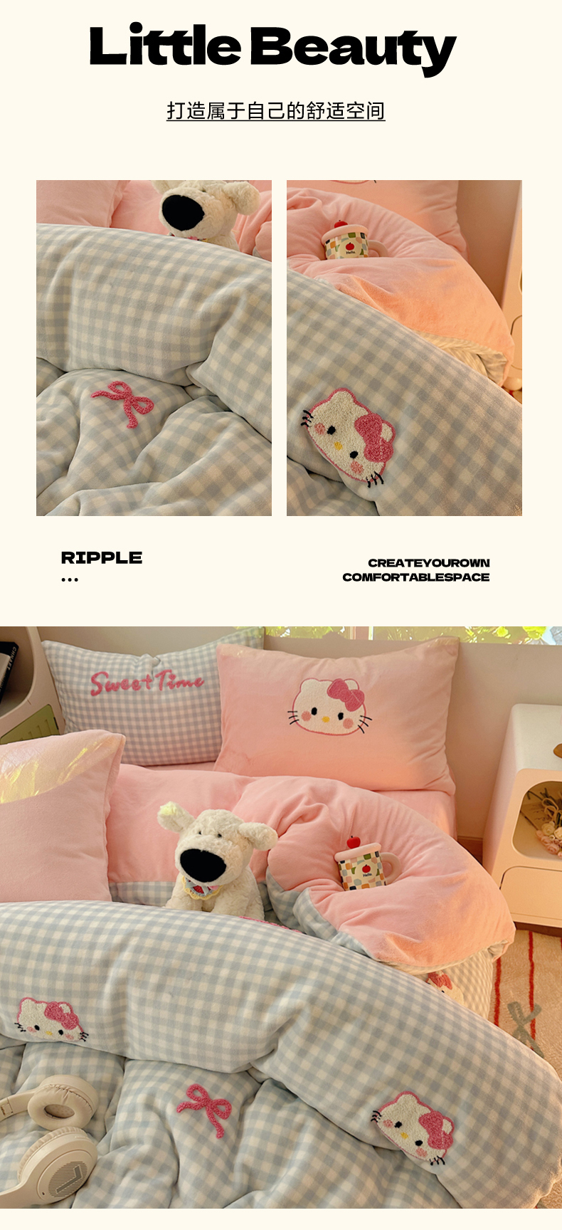 当前位置: 91家纺网 > 商品网购 > 床品套件 > 四件套 > 牛奶绒四件套 > 小叮当家纺仓储工厂店 买家秀 爆款花型2025新款秋冬保暖牛奶绒卡通小清新毛巾绣系列四件套 蓝格猫咪