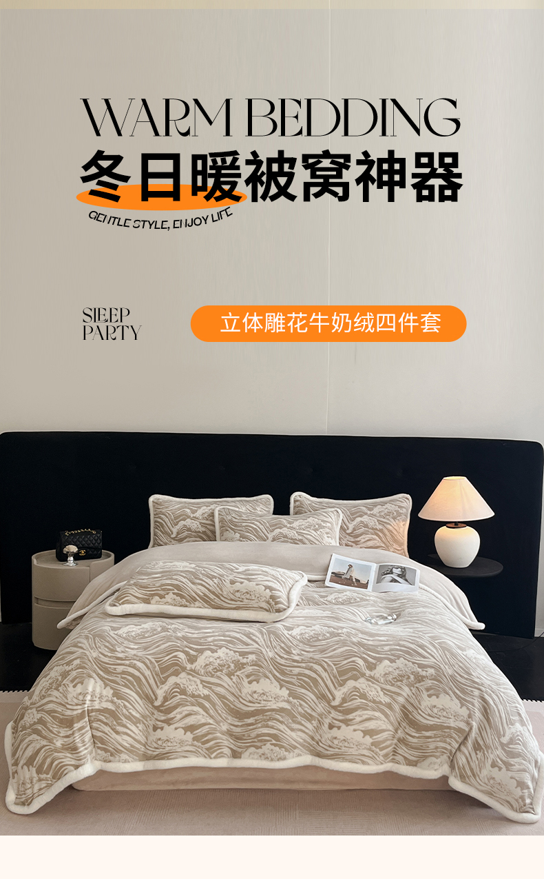 极简 2025新款立体雕花牛奶绒四件套系列 托斯卡纳-棕