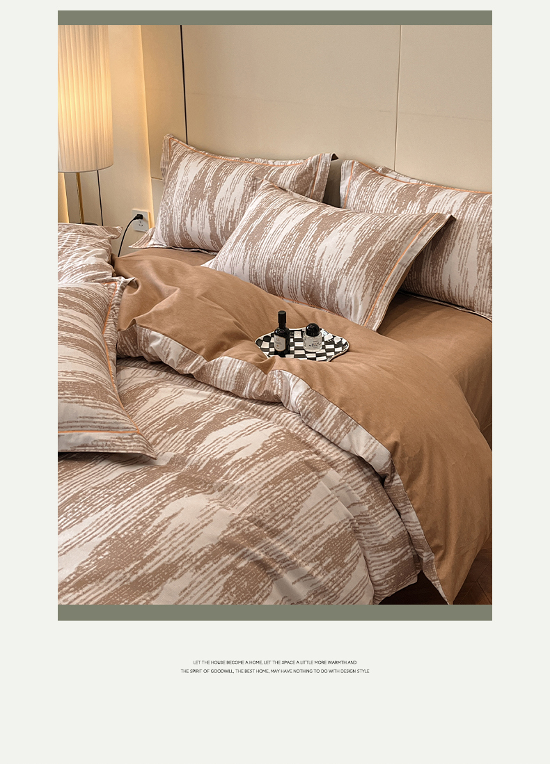 商品名称:简如 2025新款100%全棉纯棉磨毛四件套(有买家秀) 星际-咖