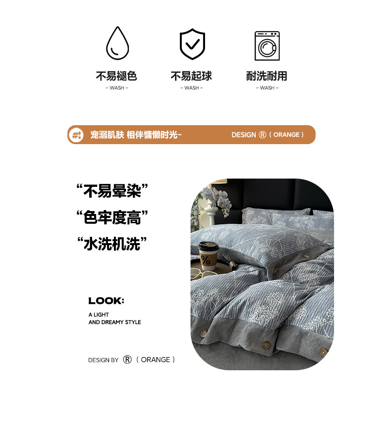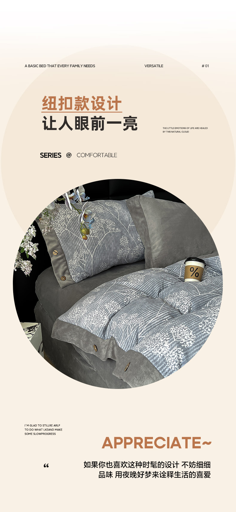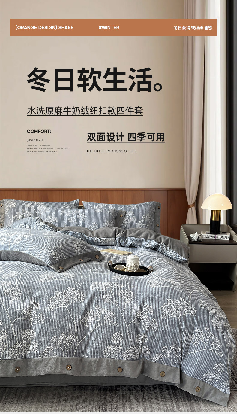 当前位置: 91家纺网 > 商品网购 > 床品套件 > 四件套 > 牛奶绒四件套 > 吾秀家居 2025新款水洗原麻牛奶绒纽扣款四件套 暗香