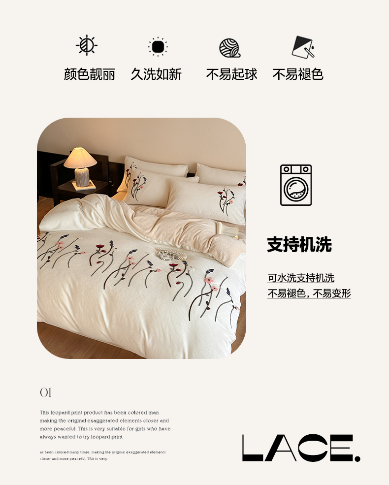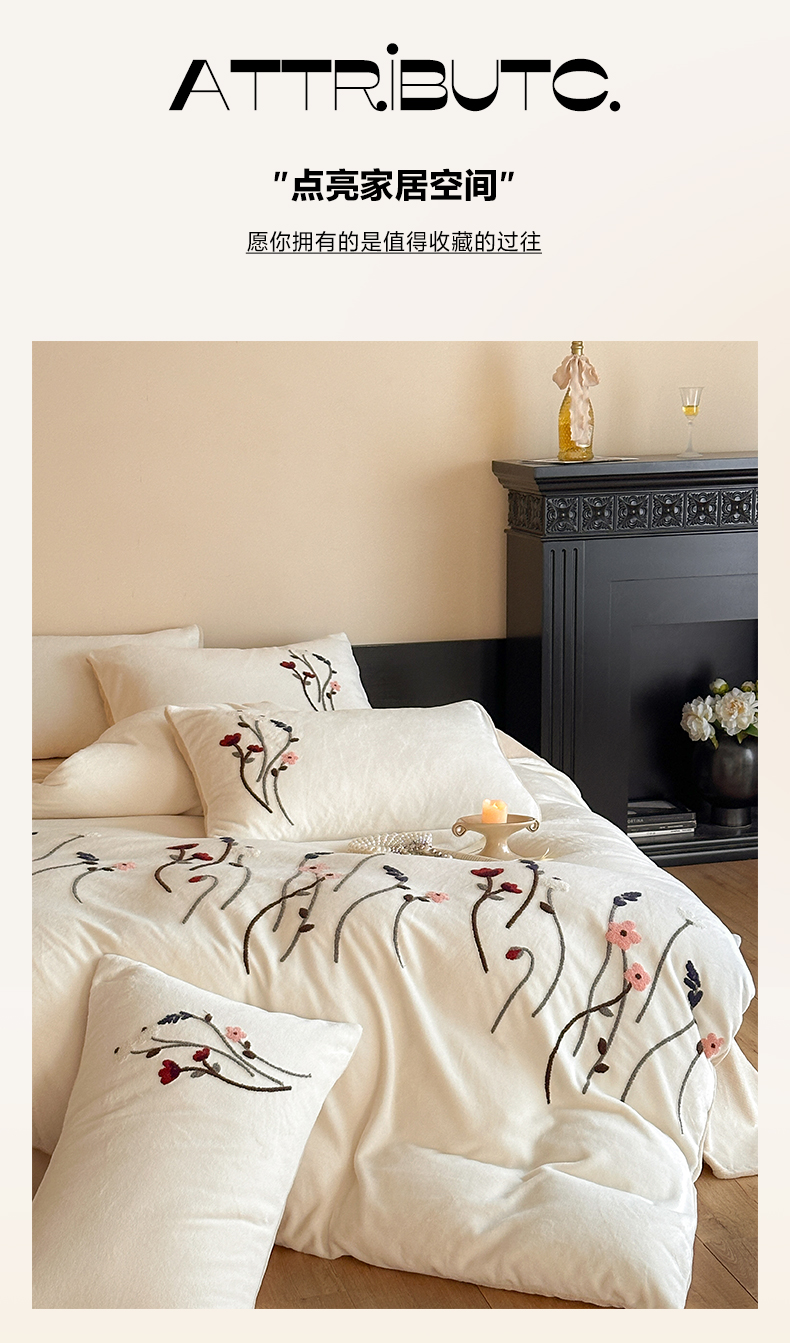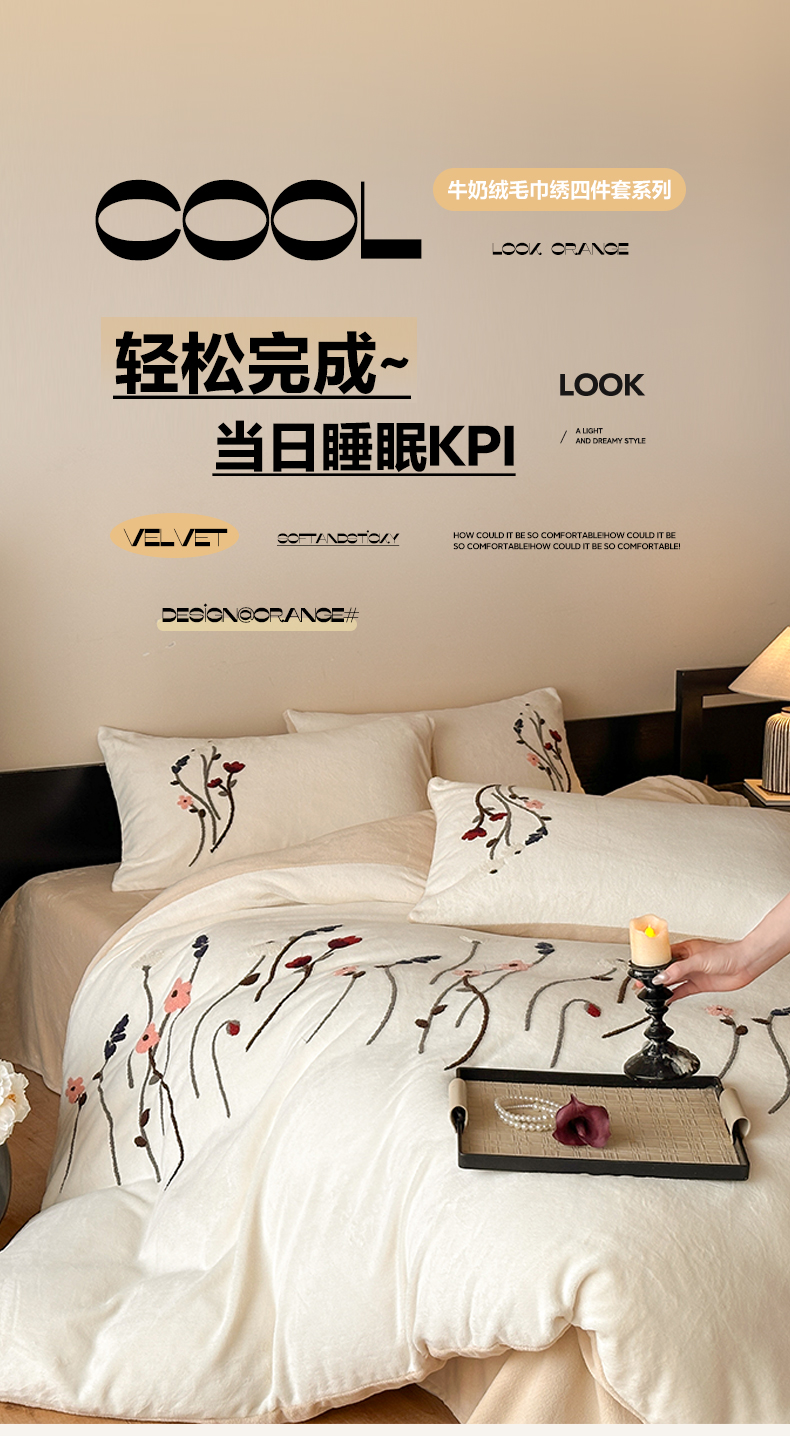 商品名称:如一 2025新款田园风毛巾绣牛奶绒四件套 幽兰-白咖