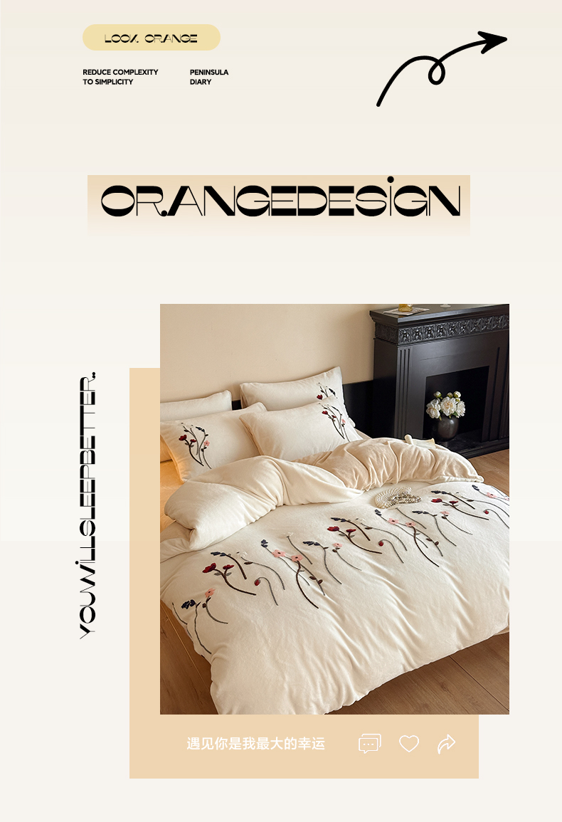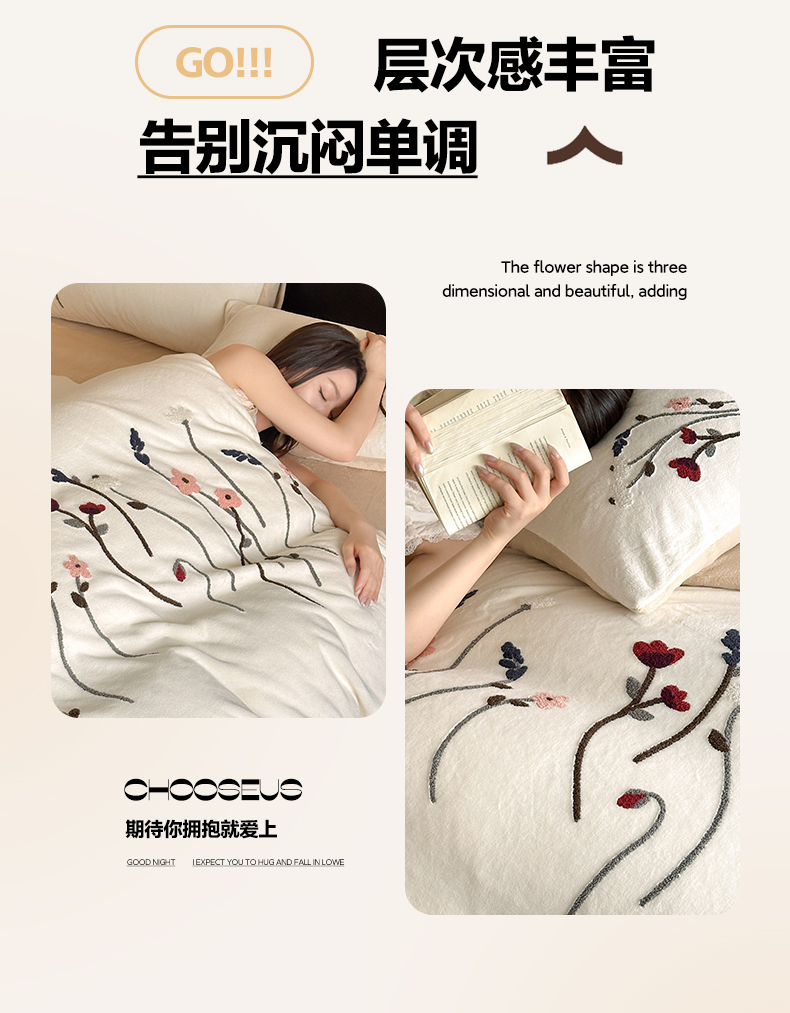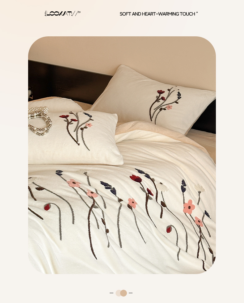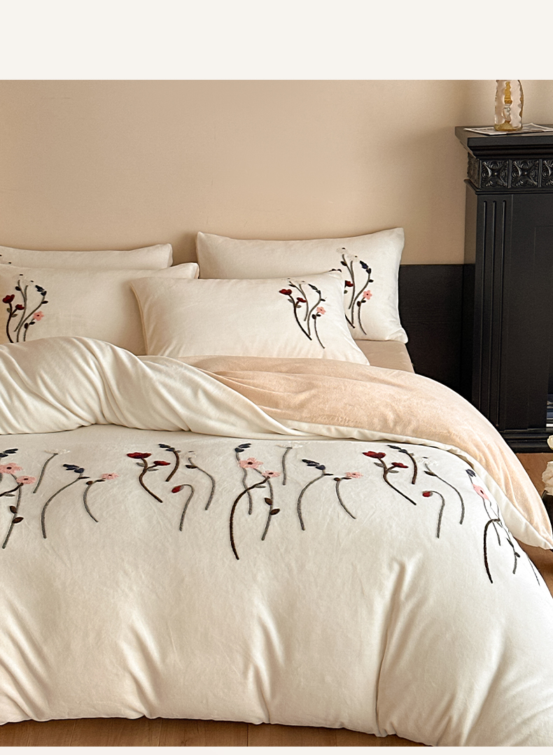 如一 2025新款田园风毛巾绣牛奶绒四件套 幽兰-白咖
