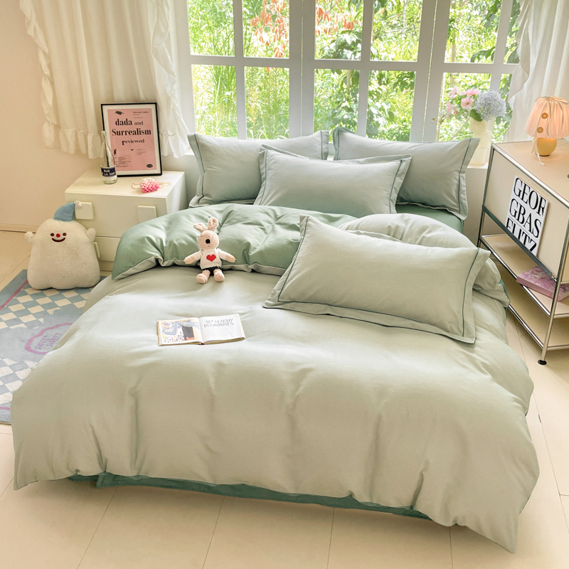 (总)仔仔熊 2025新款牛奶绒纯色双拼四件套,粉色+灰色,黄色+粉色,黄色+蓝色,黄色+绿色,灰色+橙色,卡其+咖色