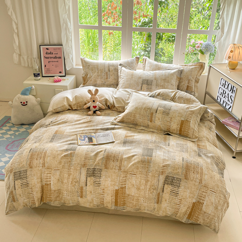 仔仔熊 2025新款磨毛四件套系列 暖黄格纹