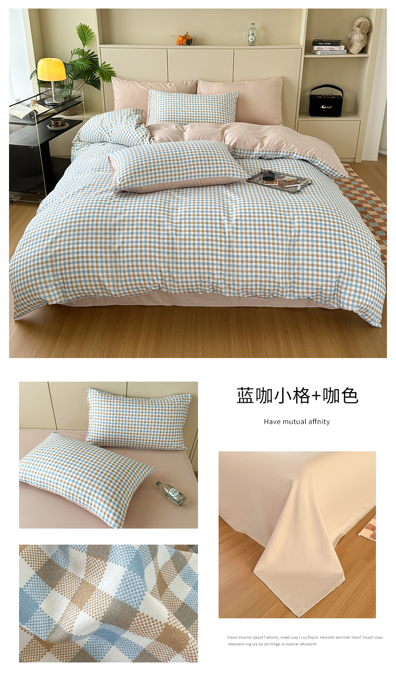 当前位置: 91家纺网 > 商品网购 > 床品套件 > 四件套 > 水洗棉四件套 > 十一家居 2025年秋冬新款A类亲肤云朵水洗棉无印风四件套-叙境系列 粉咖小格+粉玉