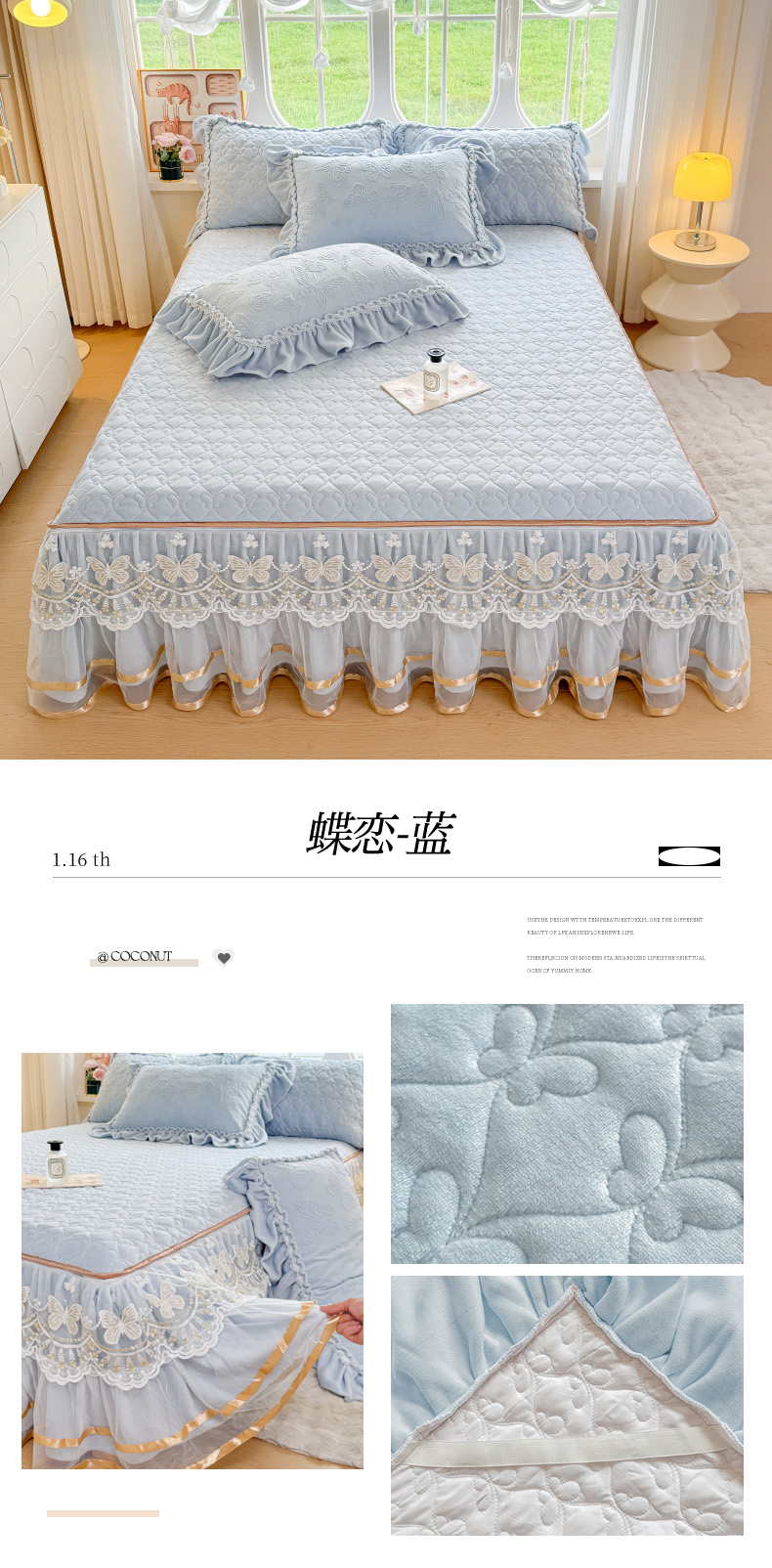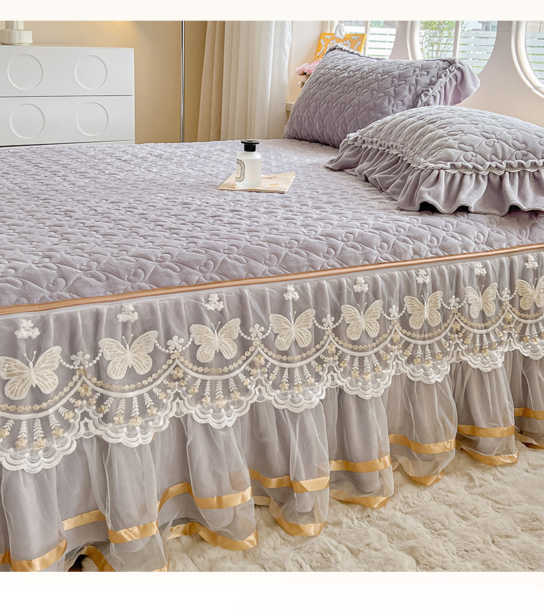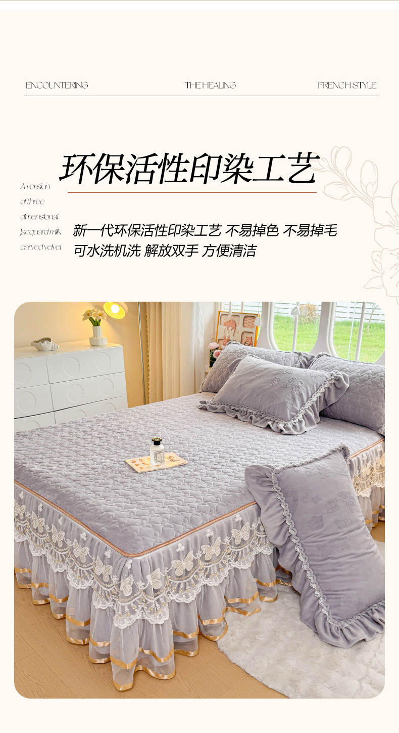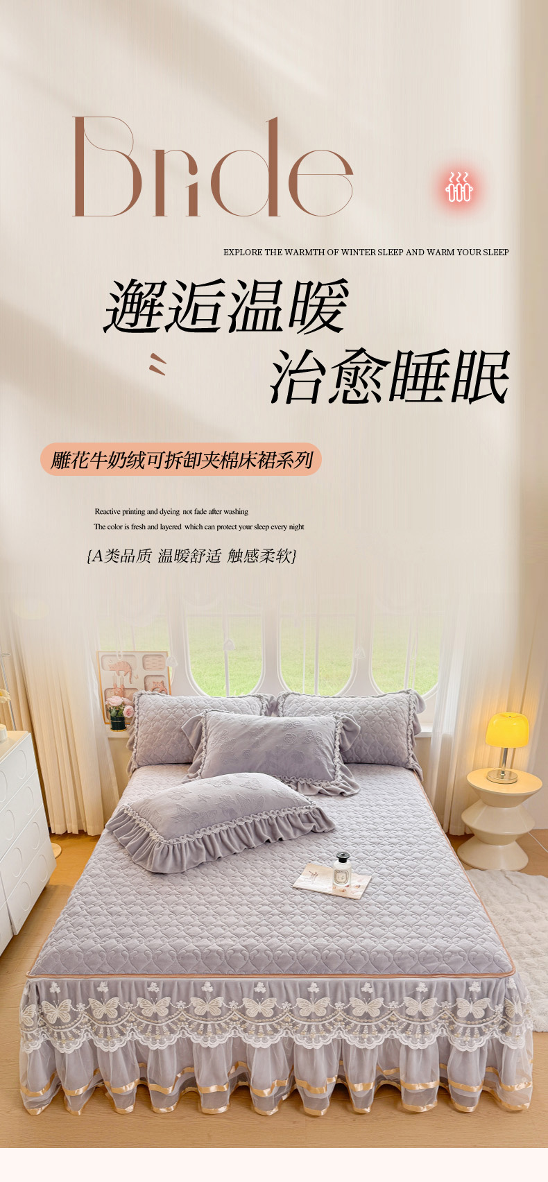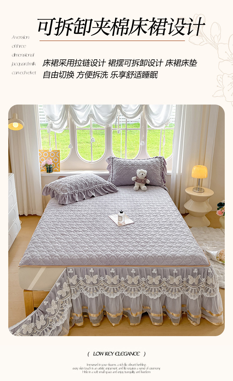 (总)罗艺轩 2025新款简约雕花牛奶绒可拆卸单床裙床裙单件单品床裙蝶恋(已申专版,严格控价)