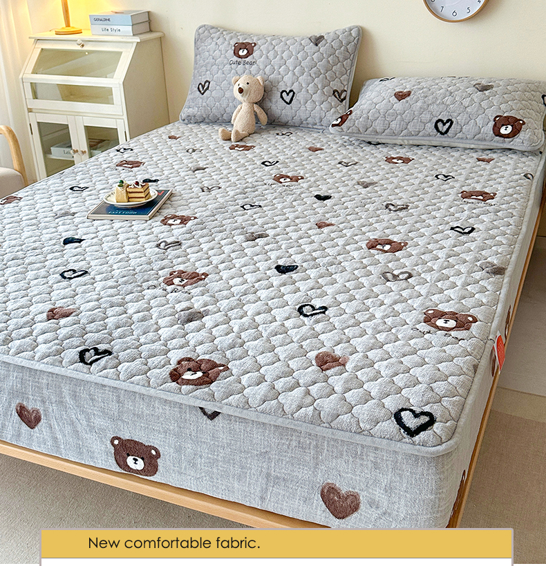 铭成家纺 2025新款牛奶绒夹棉保暖床笠 樱桃格子-卡其