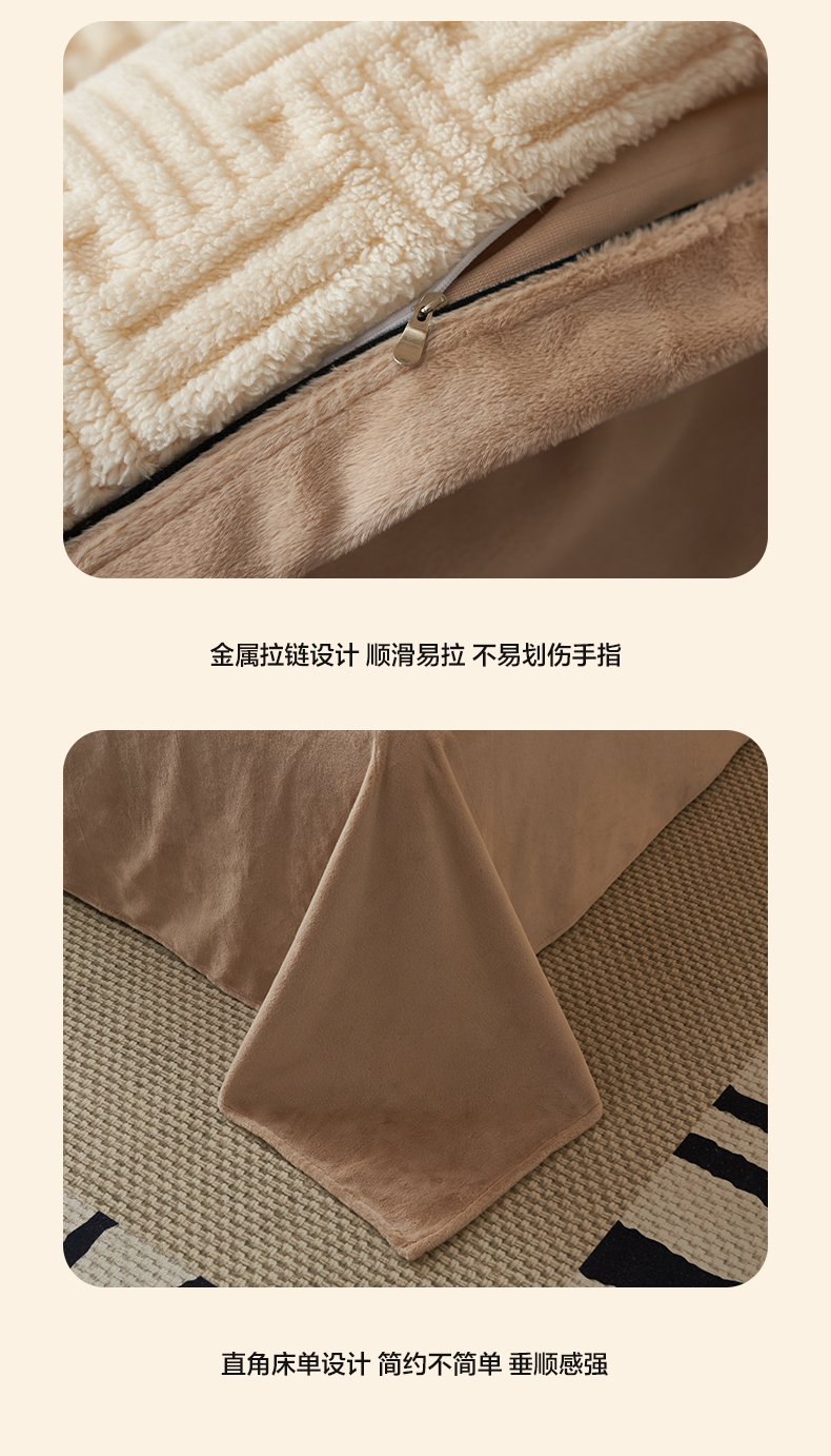 • 91家纺网 家纺一手货源 找家纺 晨曦家纺 2025新款230克加厚保暖塔芙绒牛奶绒提花单被套-简爱 简爱-奶咖