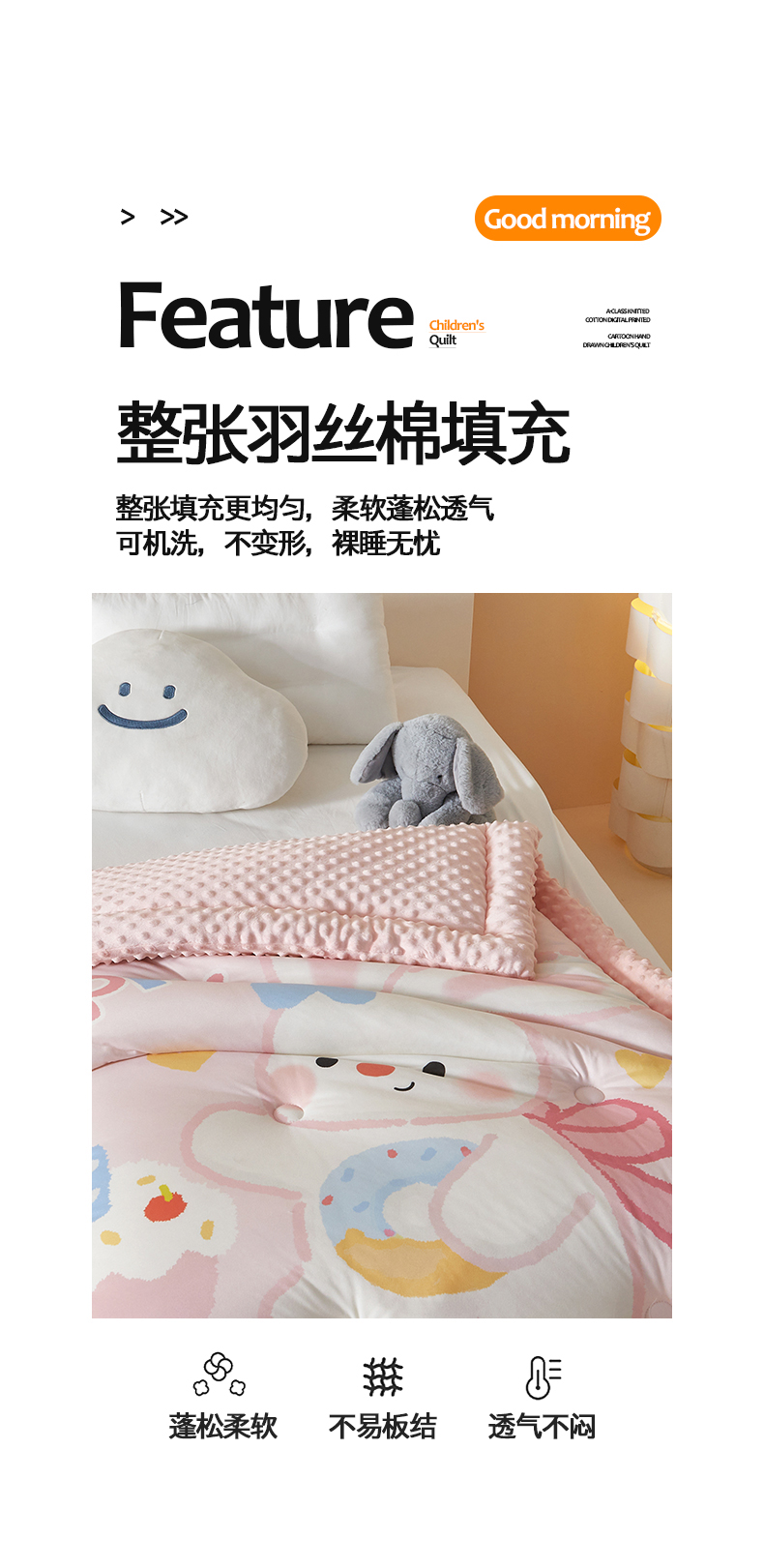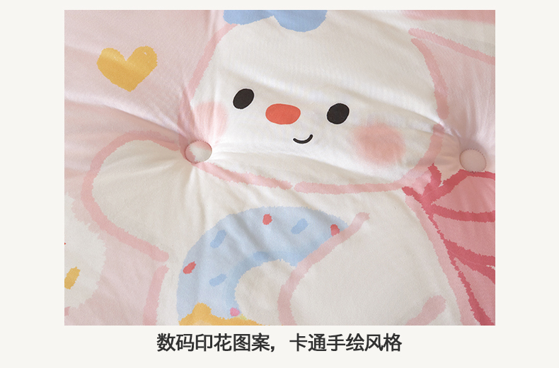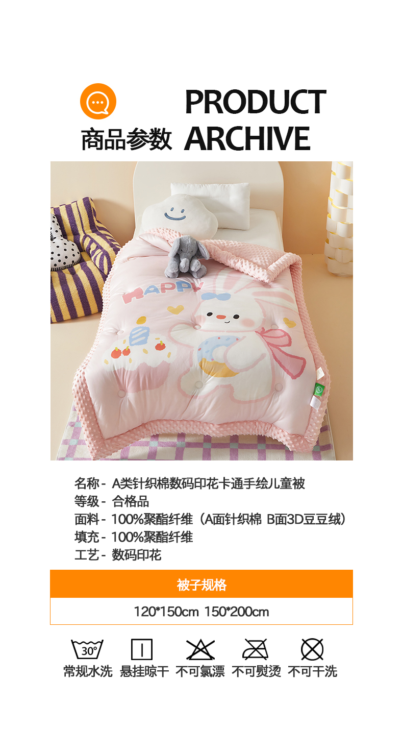 商品名称:荷马之梦 2025新款A类针织棉数码印花卡通手绘豆豆绒儿童被芯春秋被冬被-安睡系列 生日小兔