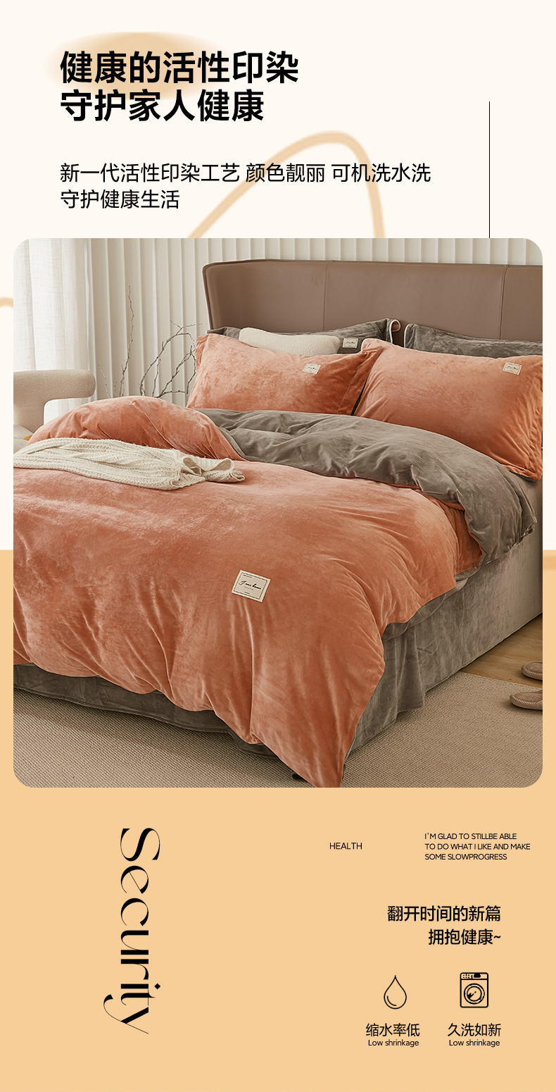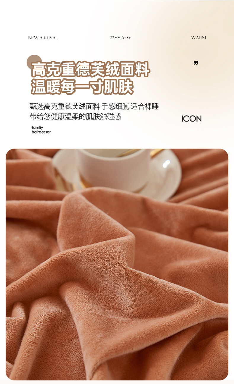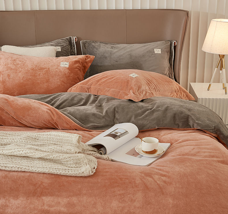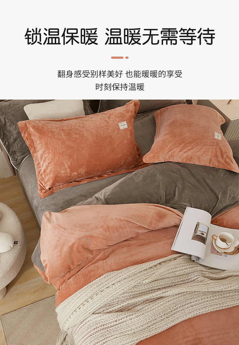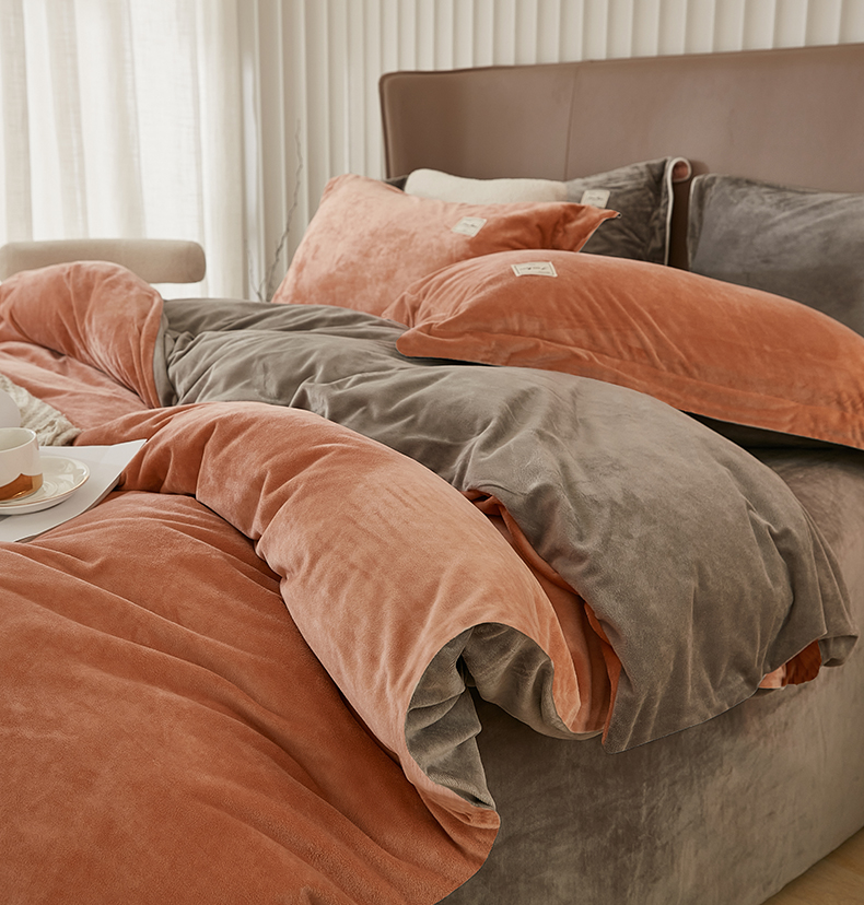 商品名称:悦然毛巾被 2025新款高克重德芙绒双拼四件套 砖红深灰