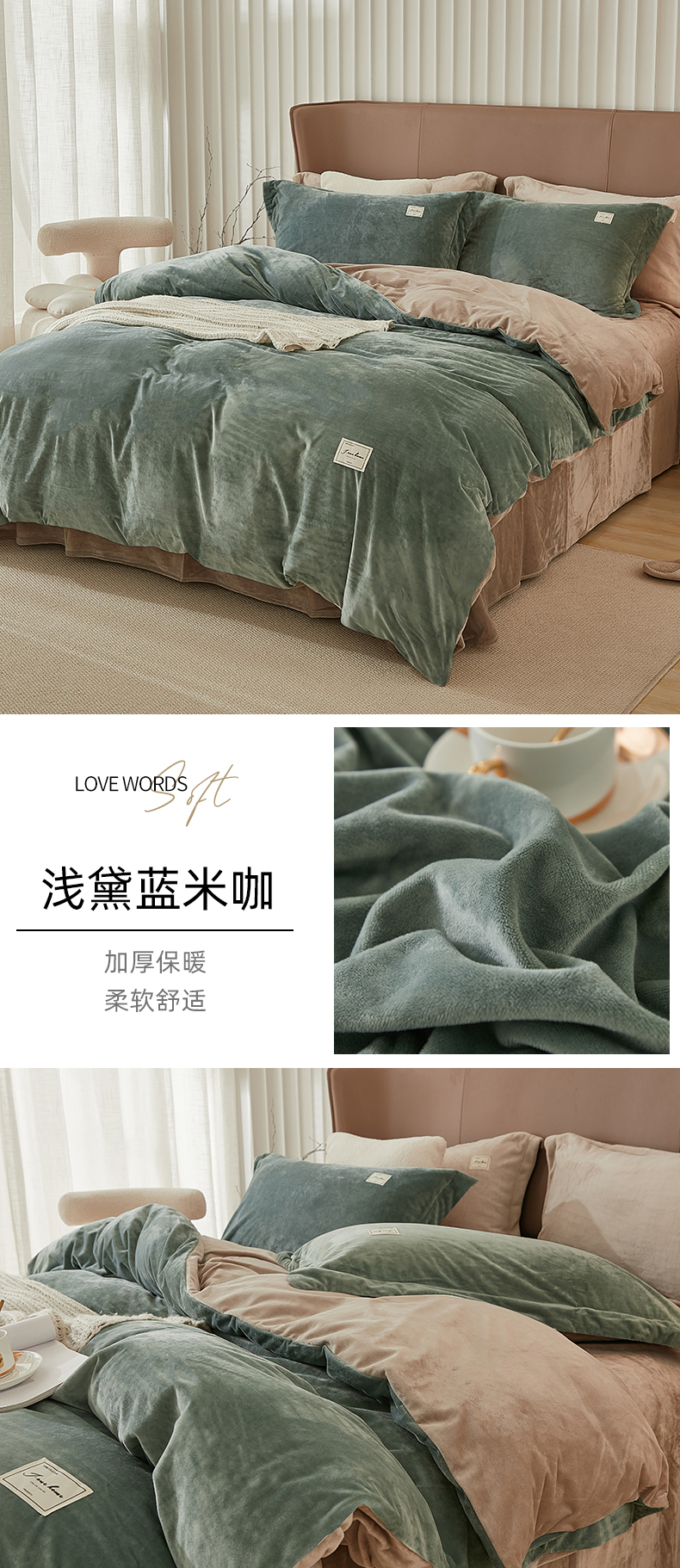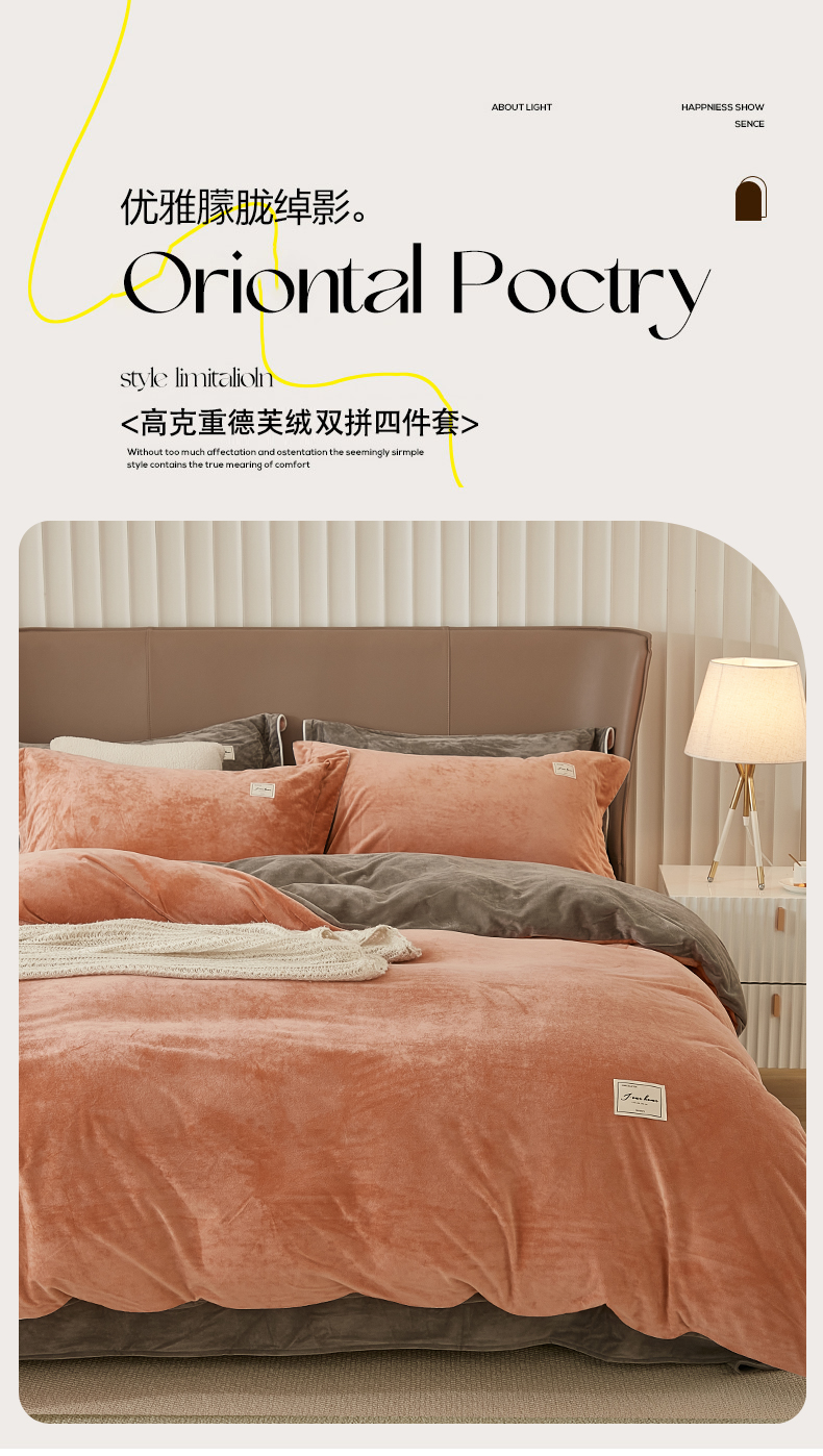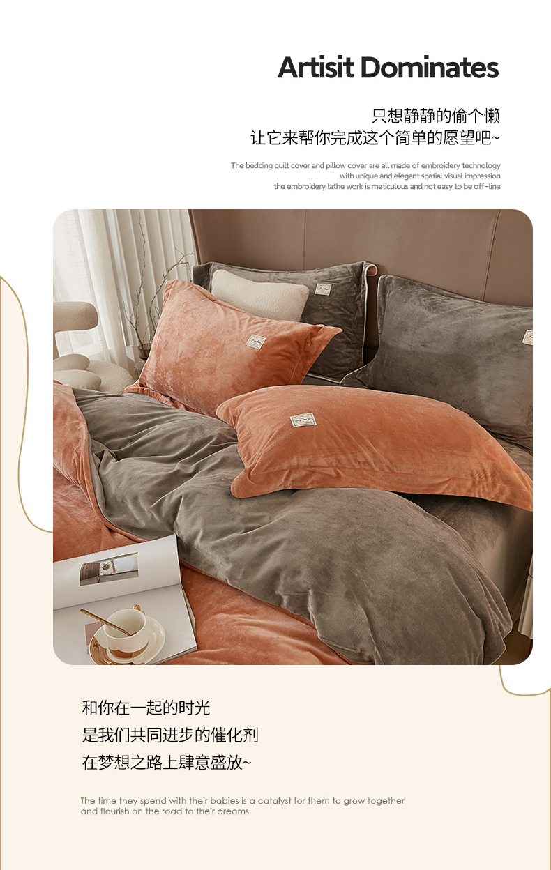 商品名称:悦然毛巾被 2025新款高克重德芙绒双拼四件套 砖红深灰