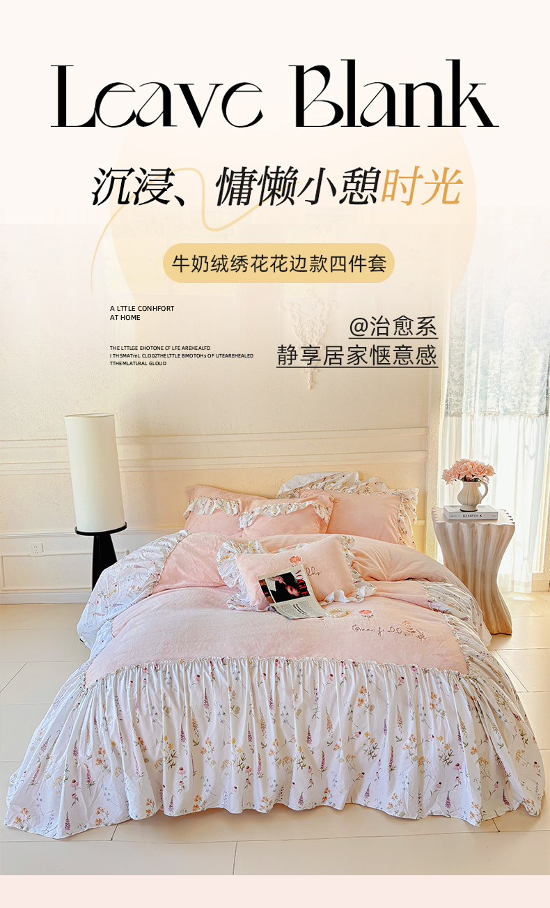 当前位置: 91家纺网 > 商品网购 > 床品套件 > 四件套 > 牛奶绒四件套 > (总)FORTWO家纺原创设计(FOR TWO家纺) 2025新款230克牛奶绒绣花法式花边款四件套