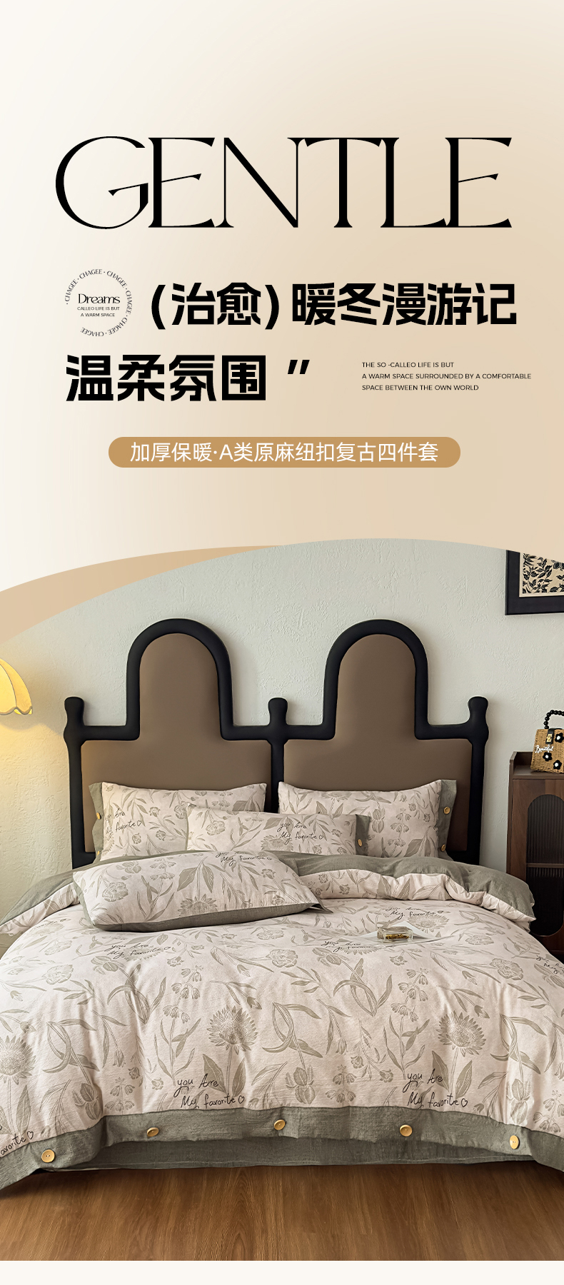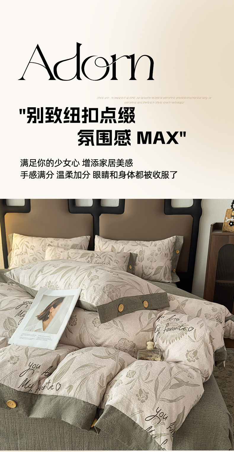 当前位置: 91家纺网 > 商品网购 > 床品套件 > 四件套 > 其它四件套 > 丝芙妮家居(原乐视家纺) 2025新款原麻纽扣款四件套 叶新泽-绿·纽扣款
