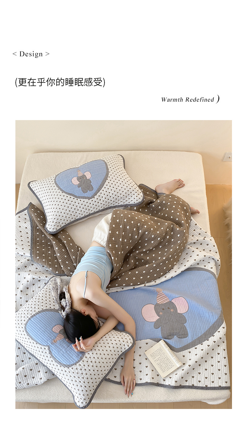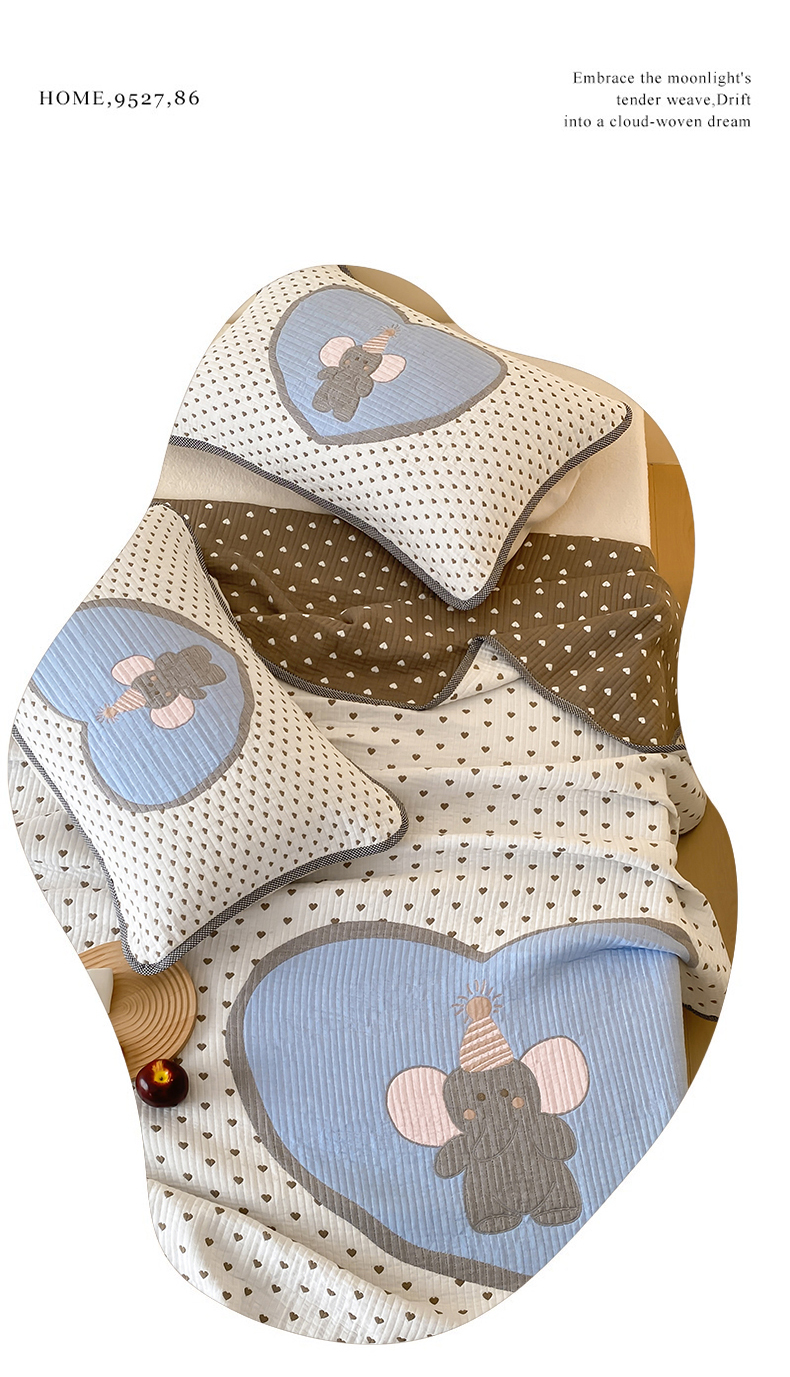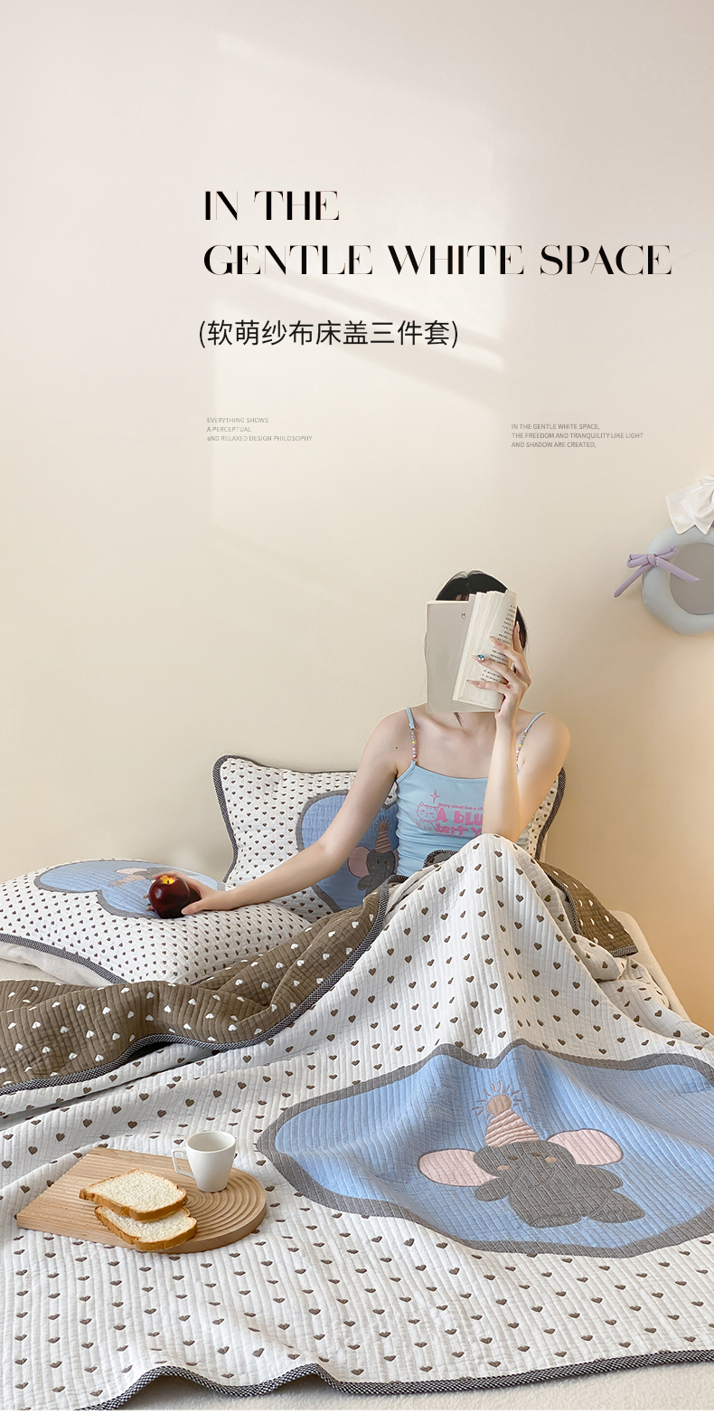 麻依 2025新款软萌纱布床盖三件套(控价:229元) 心心小象